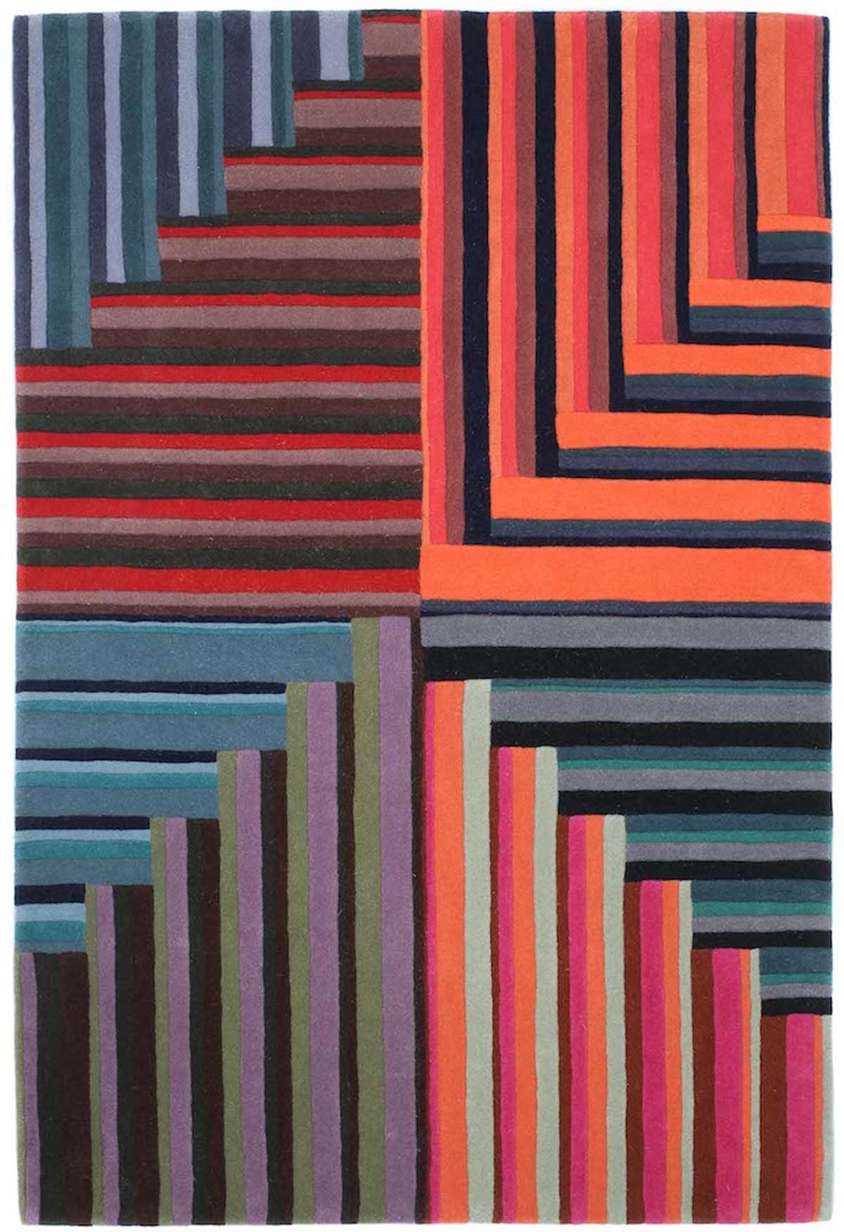 The geometric shapes and lines on the rug cross, interact and repeat with subtlety and accuracy.