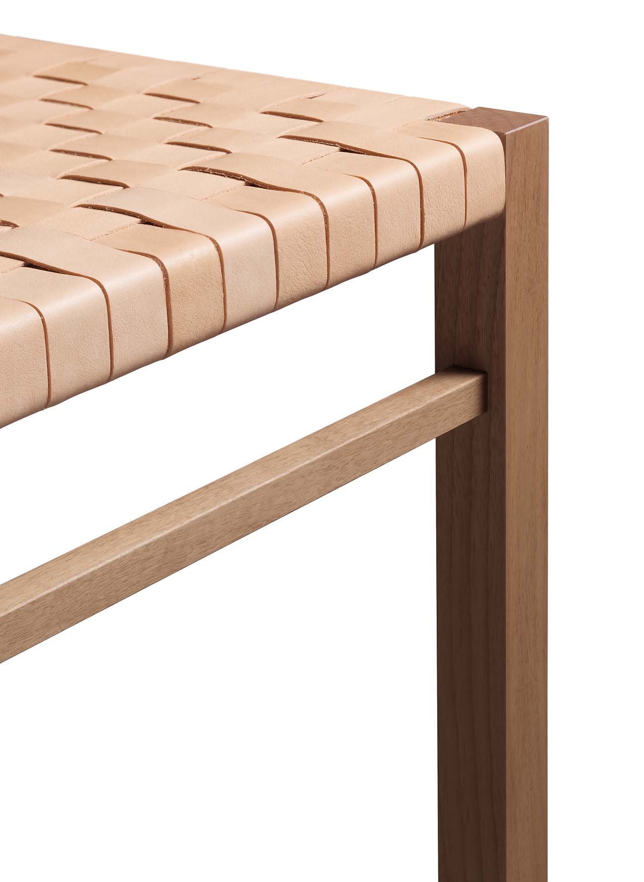The simple and elegant stool ASWAN features a hand-woven seat surface finished in a textile band or vegetable tanned leather, which is luxuriously soft and will patinate with exposure to direct light. Inspired by Egypt and hence the name, ASWAN is a clear example of Ferdinand Kramer's alluring appeal in his designs of functional and compelling pieces. The stool ASWAN is available in waxed solid European oak or European walnut. The versatile character of the linear stool allows for an application in diverse environments, either as a stand-alone piece or also in combination with other furniture from the e15 collection. For additional stability, the stool's frame is fitted with a steel profile. ASWAN is delivered as one piece.