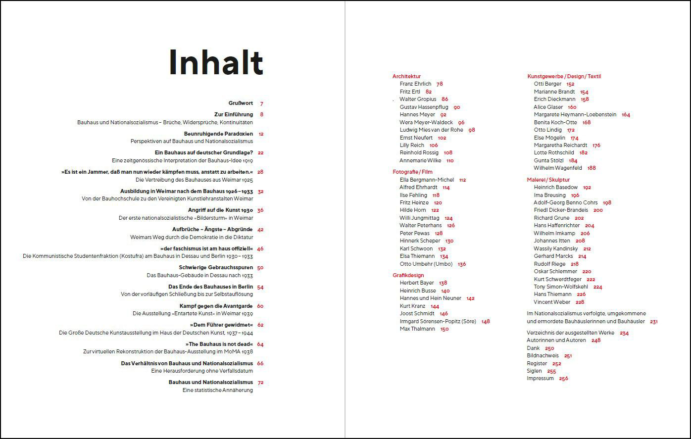 Artists featured include Herbert Bayer, Ima Breusing, Franz Ehrlich, Fritz Ertl, Lyonel Feininger, Walter Gropius, Hans Groß, Margarete Heymann, Wassily Kandinsky, Paul Klee, Ludwig Mies van der Rohe, Else Mögelin, László Moholy-Nagy, Rudolf Ortner, Peter Pewas, Lilly Reich, Margarete Reichardt, Karl Peter Röhl, Oskar Schlemmer, Joost Schmidt, and Irmgard Sörensen-Popitz.