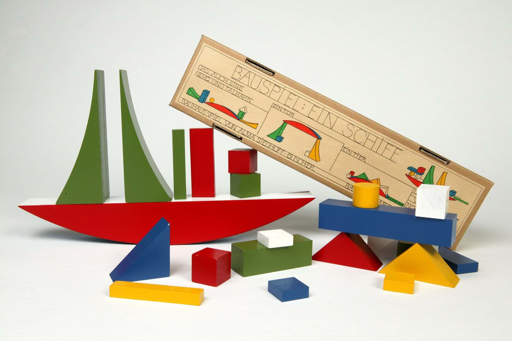 the context of the exhibition. As a result, the construction game was produced and distributed in various variations by the Bauhaus wood