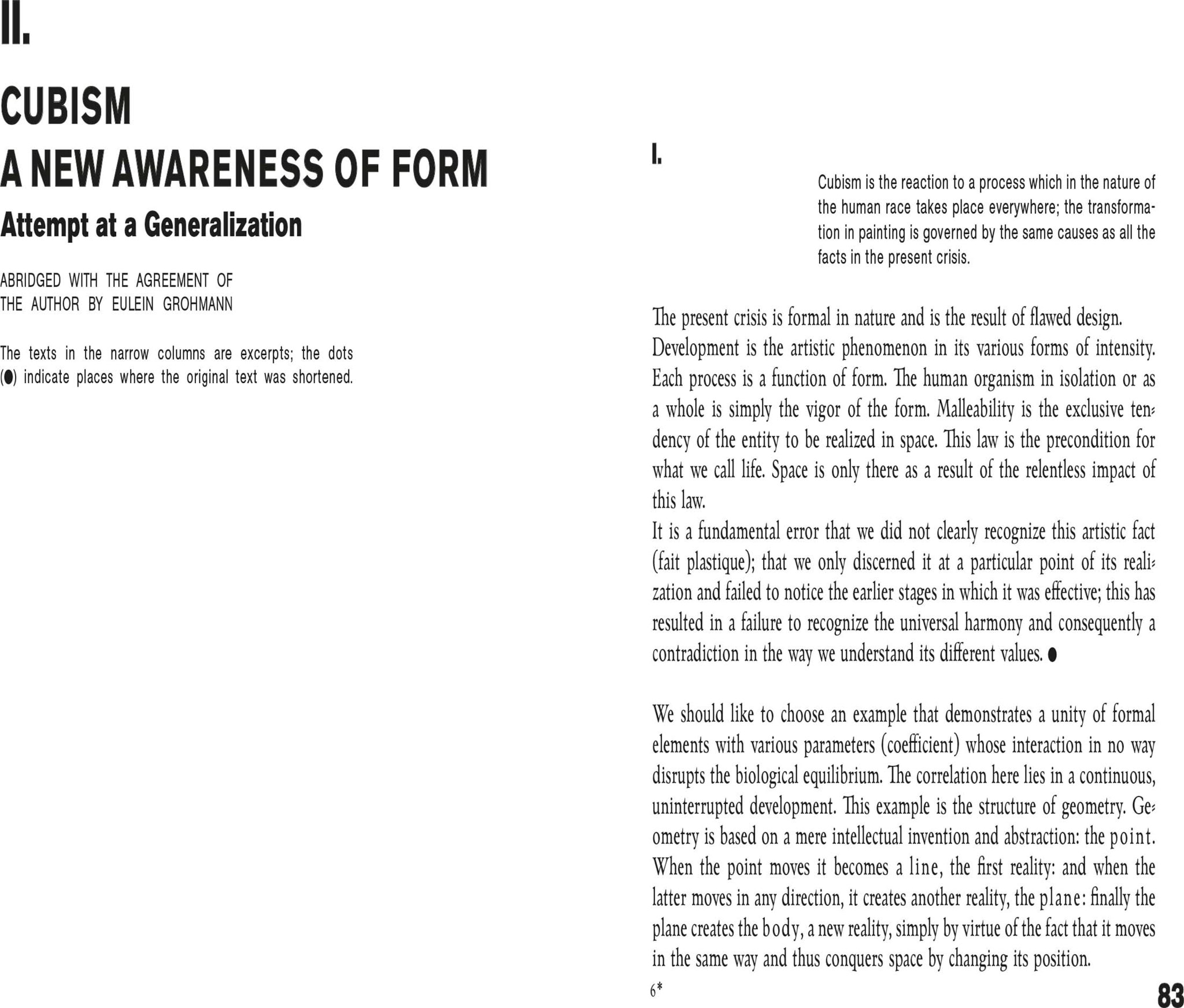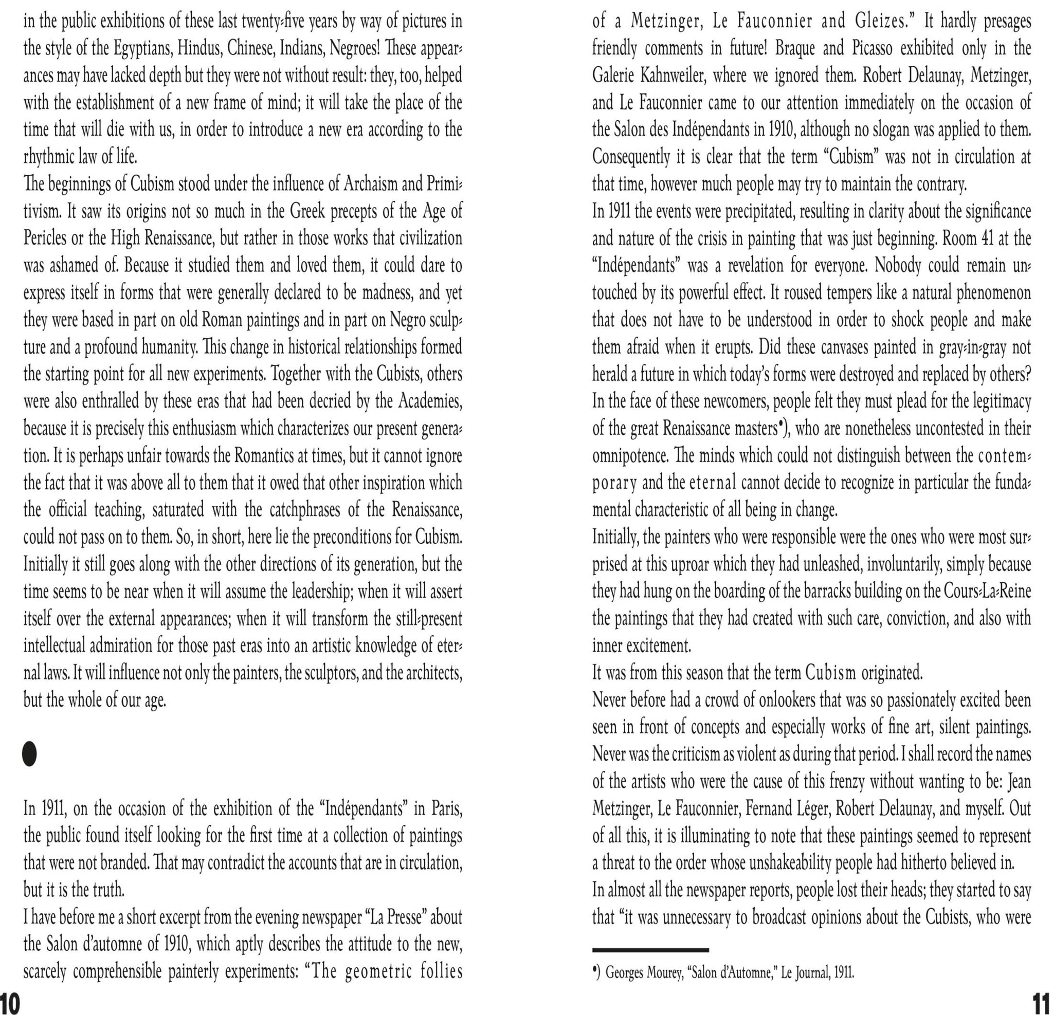 The French painter and writer Albert Gleizes is considered an important representative of Cubism and described himself as the founder of this art movement. Although he was never an official member of the Bauhaus, Gleizes nevertheless dedicated his influential essay on Cubism to the art school. In 1928, the editors László Moholy-Nagy and Walter Gropius included this essay as volume 13 in the Bauhaus book series. In addition to his own works, Albert Gleizes also shows artworks by Georges Braque, Robert Delaunay, Fernand Léger, and Pablo Picasso as reference examples and places the Bauhaus and its book series in an international context that impressively captures the interaction of the numerous art movements of the time.