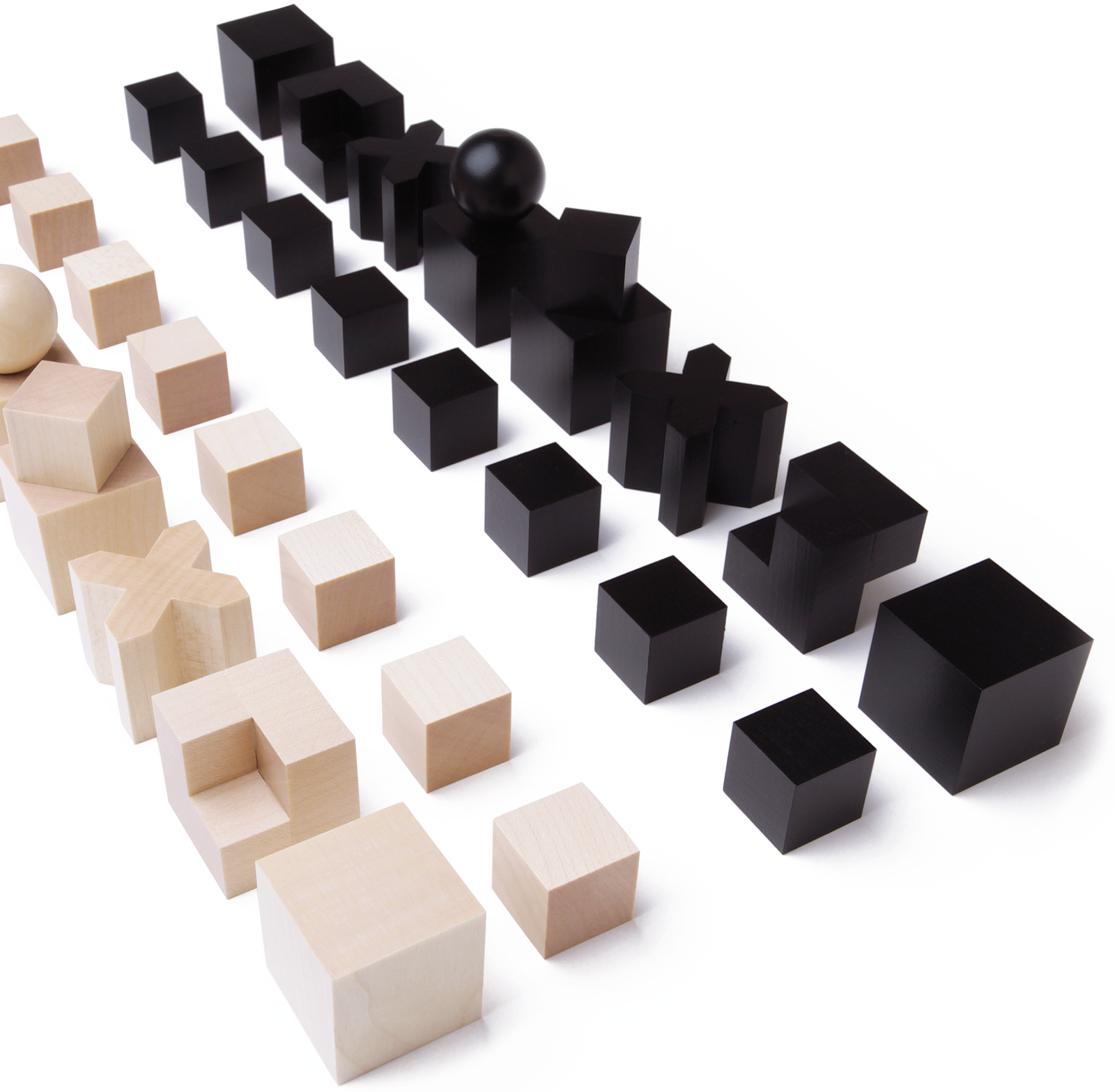 Minimalist Bauhaus Chess by Josef Hartwig (1923): cubes & spheres in maple, numbered edition by naef. Design object, game and conversation piece in one.