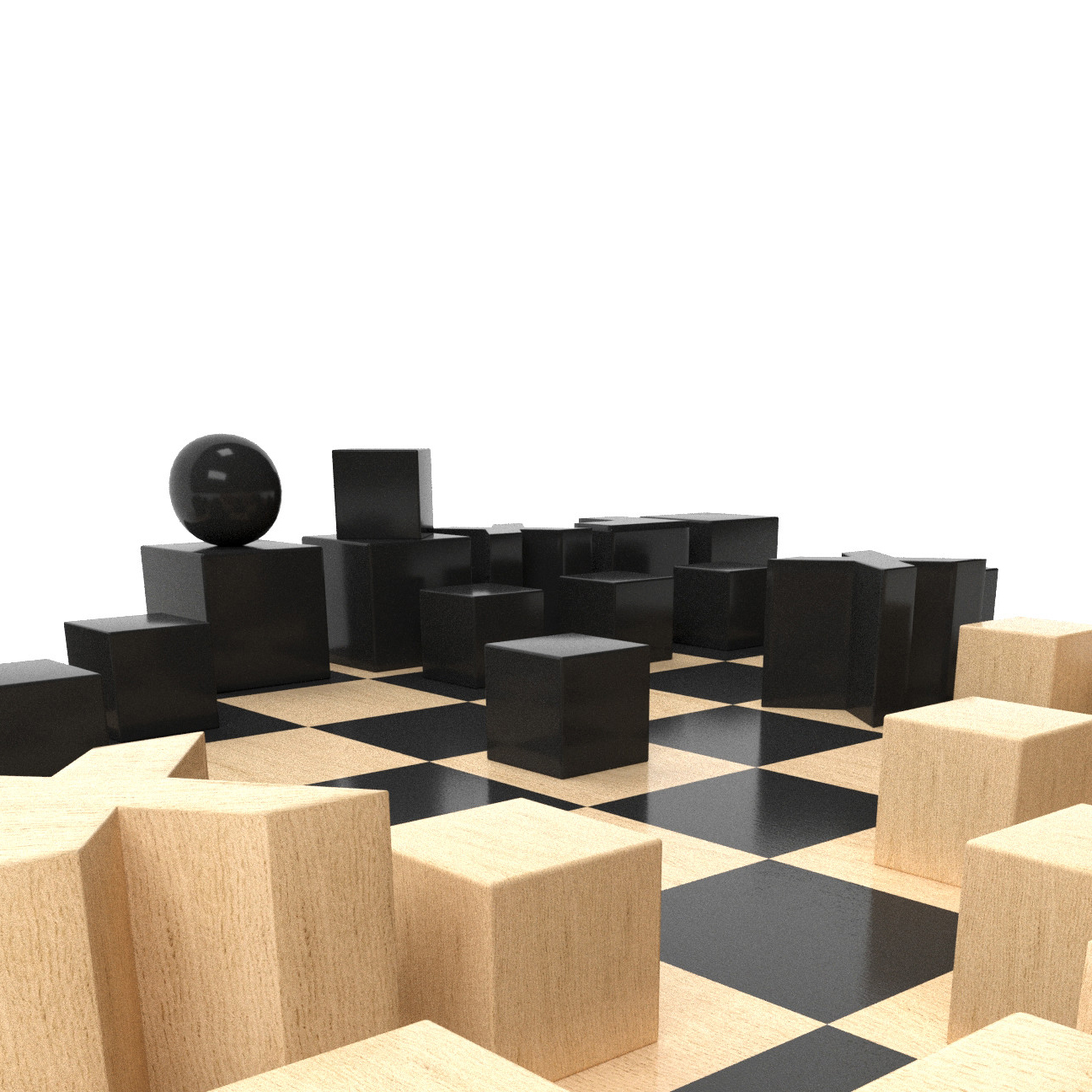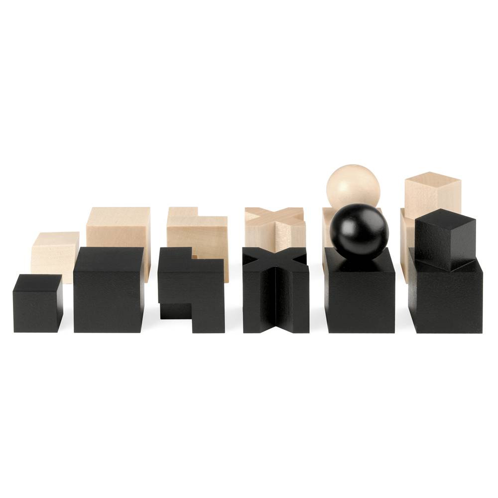 Form and completion of each figure are subject to the dictum of function. The figures harmonize with the playing surface, the chessboard, since they do not form a playful contrast, but rather find their way stringently into the symmetry.