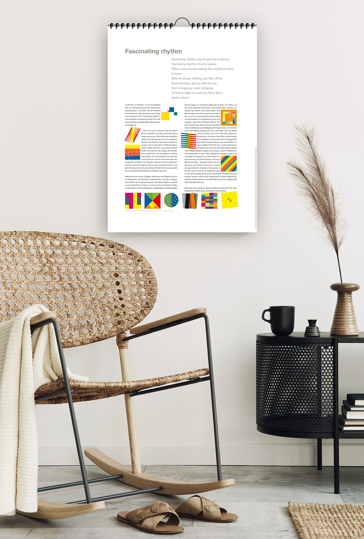 The graphic calendars by Hans Karl Zeisel impress with their clarity and strong expressiveness. Due to the large, unusual format of 42 x 59,4 cm, the individual graphics are shown to their best advantage month after month. Printed on high-quality paper using offset printing. Hans Karl Zeisel, a master of the language of form, has delivered a brilliant work for our shop with the Graphic Calendar 2022 and it is exclusively available at Bahaus Movement. The prelude to an annual return with ever new designs.