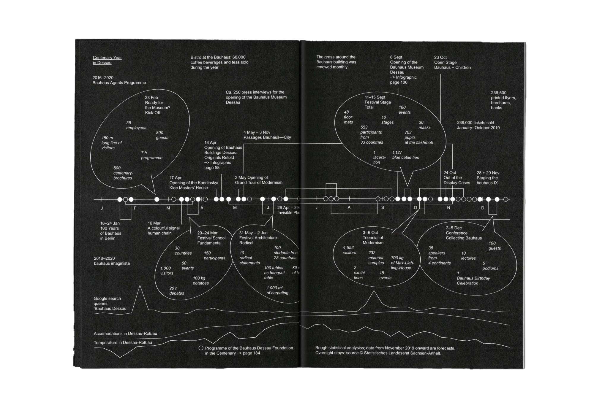 The magazine Bauhaus No. 11 appears at the end of the major Bauhaus anniversary year. A review as preview. What was, what remains, and, most importantly, what is to come at the Bauhaus Dessau after “100 Years of Bauhaus”? The magazine looks back at an eventful jubilee and captures special moments, atmospheres, encounters, and insights. Bauhaus No. 11 presents the radical ideas that the Bauhaus has inspired in 100 young architecture students from all over the world and asks what a modern-day Bauhaus school might look like—it dances on the stage, browses in the building research archive, visits the newBauhaus Museum Dessau, and experiences the Dessau Bauhaus buildings in a completely new way. In the process, it meets Bauhaus experts and newcomers, fans and sceptics, tourists and performance artists, historians and shapers of the future.