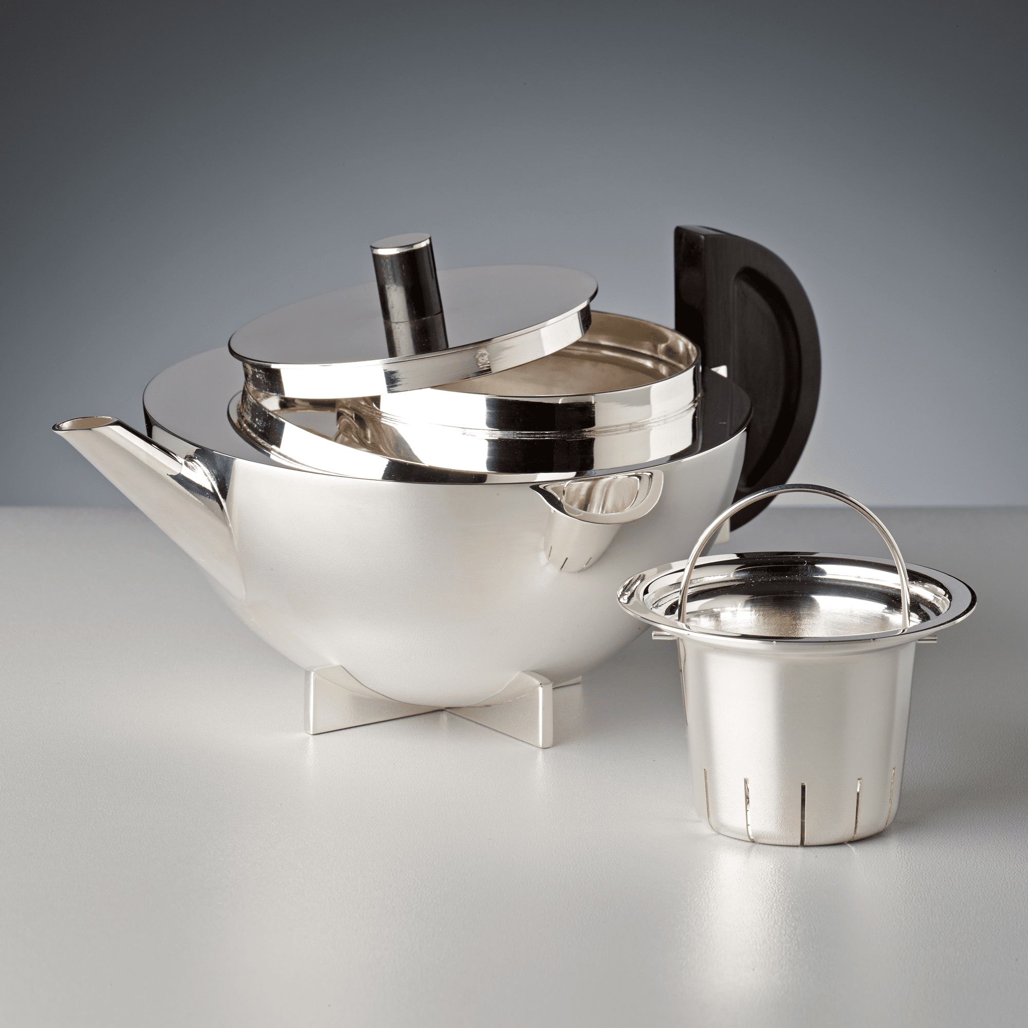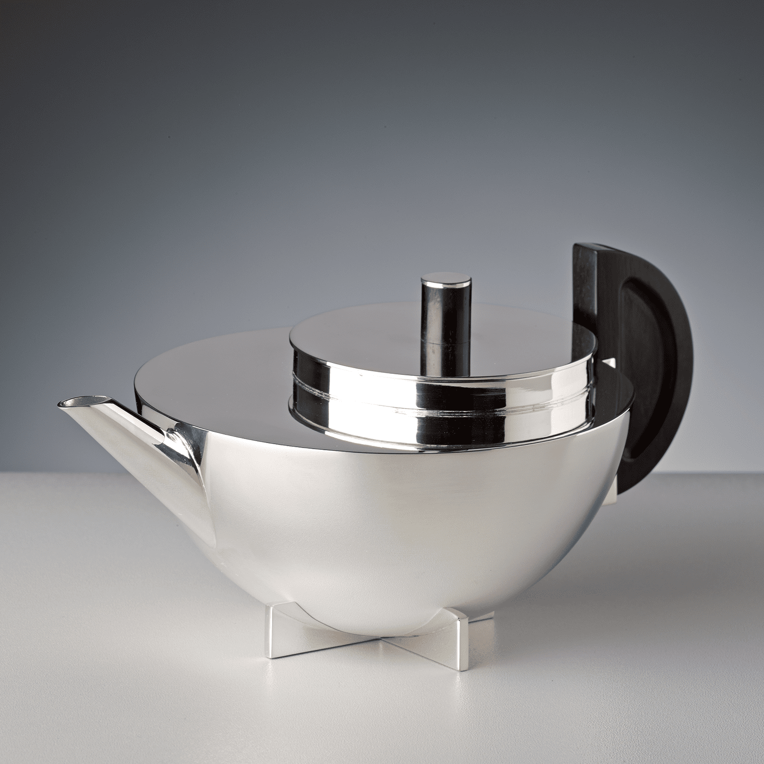 Marianne Brandt's tea extract jug from 1924 is considered one of the most important icons of the Bauhaus. Only a few original examples from the metal workshop of the Bauhaus are known today and all of them are in museum possession. These specimens, made by Marianne Brandt herself, all differ slightly in shape and have a value of over EURO 250,000. A special design feature is the typical cross-shaped foot section. Today's licensed version of the tea extract jug is manufactured by Tecnolumen as a collector's edition in silver-plated brass. The tea extract jug is also available in 925 sterling silver on request.