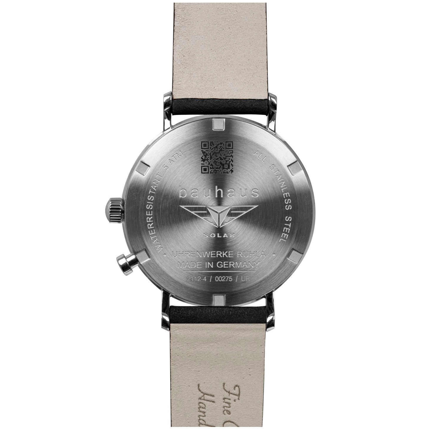 The Bauhaus Solar men's watch: elegance and innovation in one. Silver dial, solar drive, energy display, leather strap - a contemporary classic.