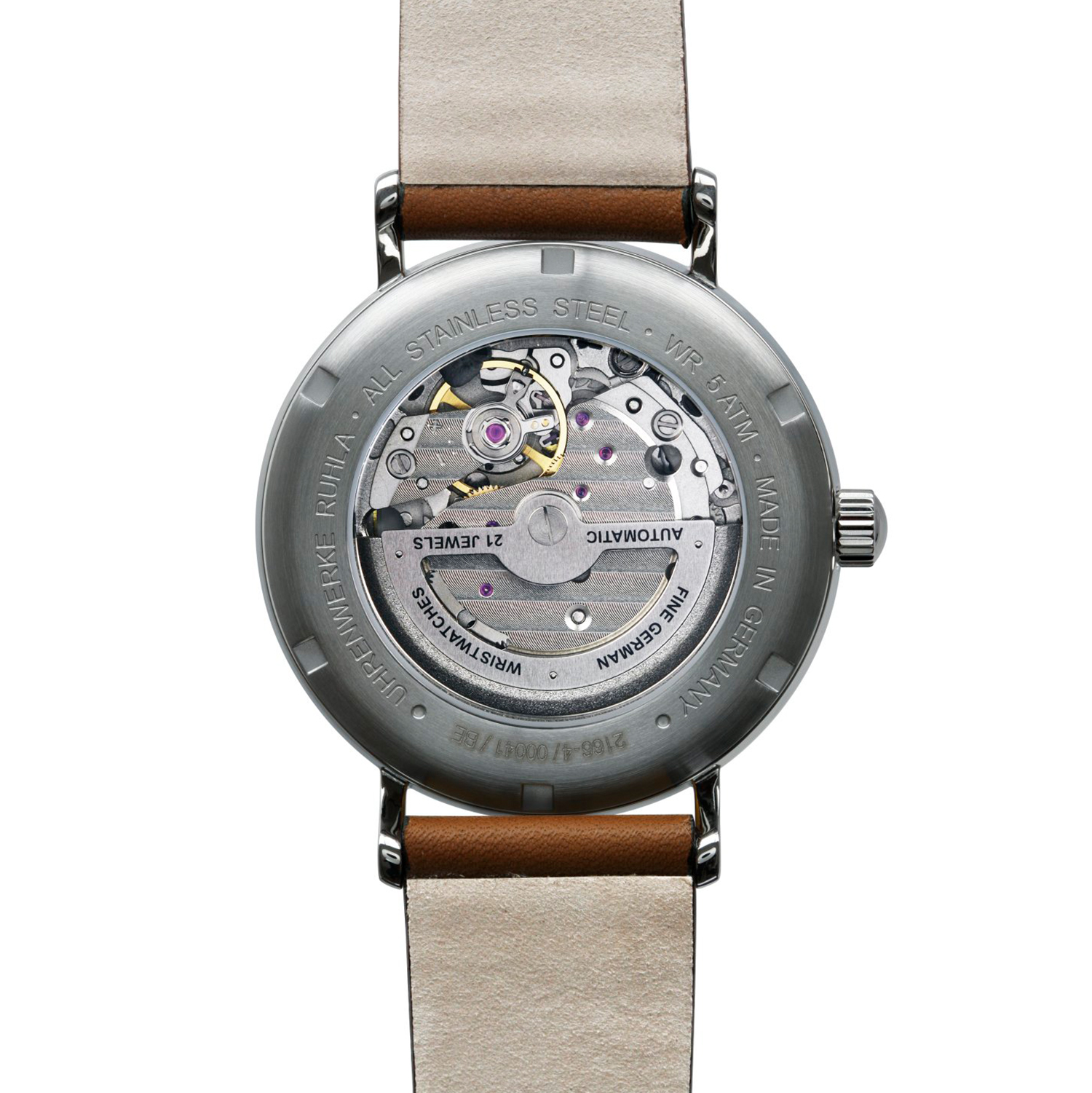 Driven by a precise Japanese automatic Citizen-Miyota 82S5 movement with 21 jewels, it combines sophisticated design with technical sophistication. The stainless steel case, mineral K1 safety glass and water-resistant construction up to 5 bar underline its robustness. With a diameter of 41 mm, a height of 14 mm and a high-quality leather strap, the watch offers comfort and style. Manufactured in Germany with in-house production in Ruhla, it stands for the highest quality and German watchmaking tradition.