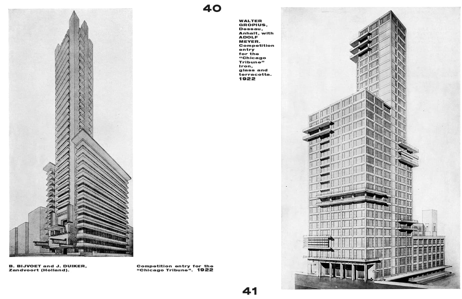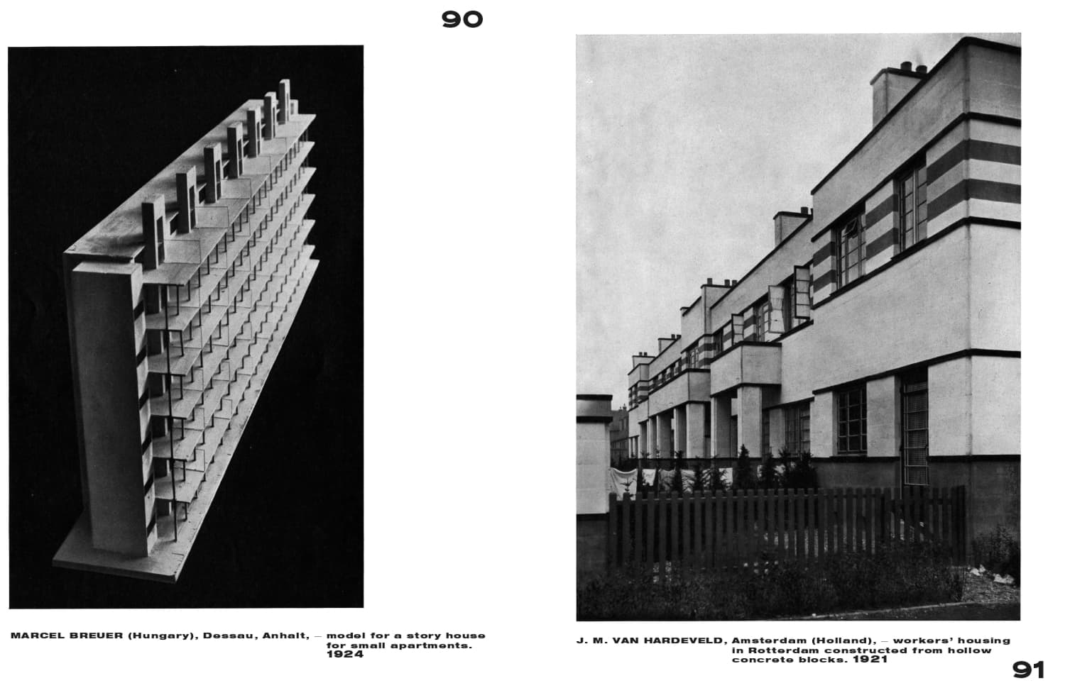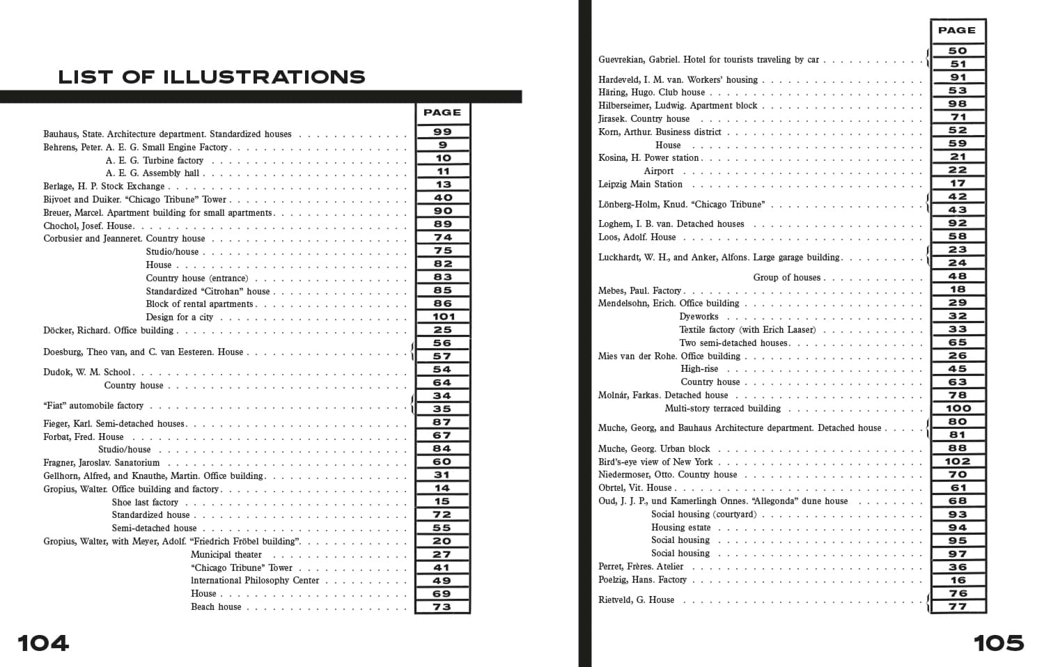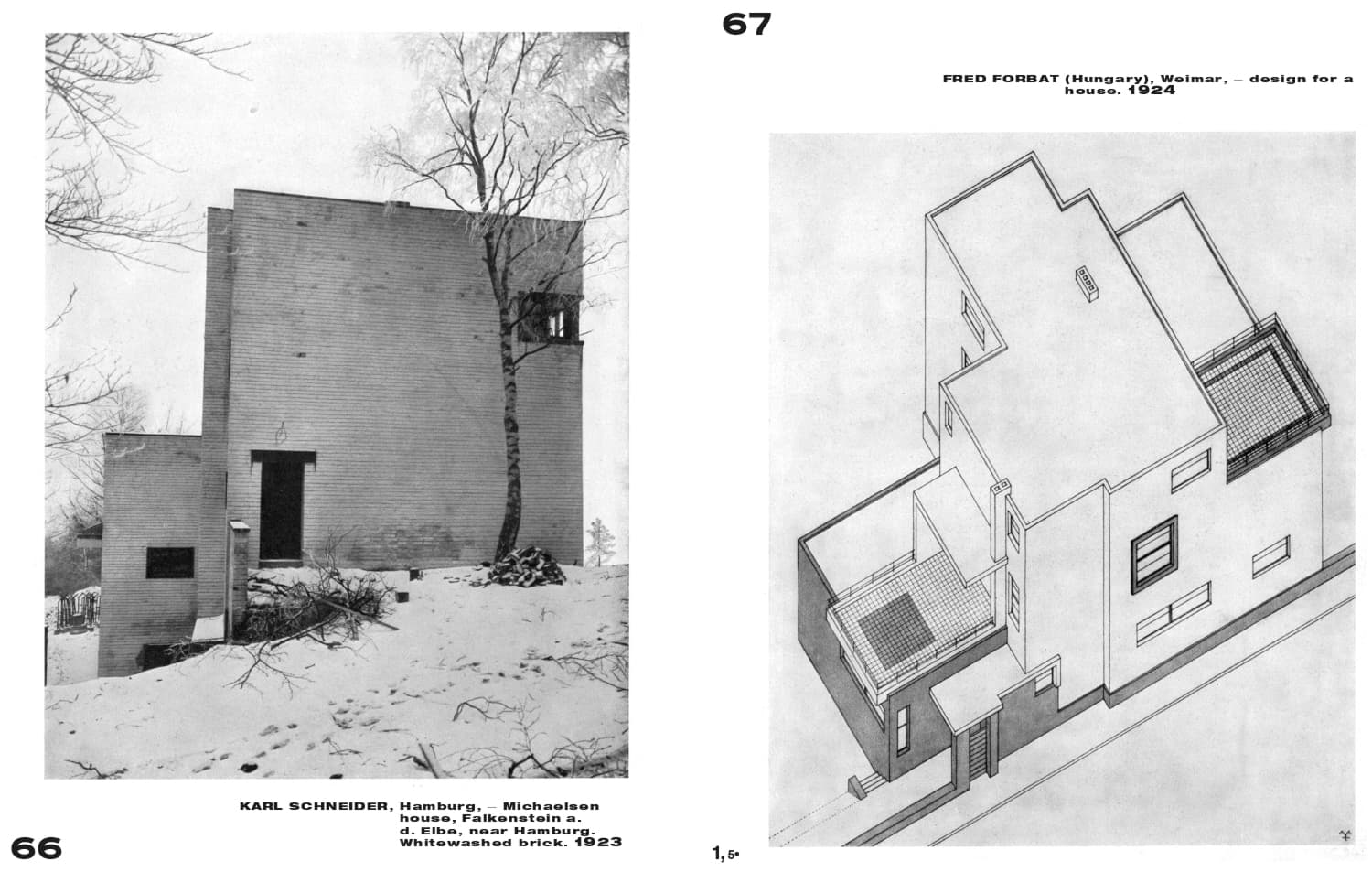 When the Bauhaus moved to Dessau in 1924, it was finally possible to publish the first of the Bauhausbücher that Walter Gropius (1883–1969) and Làszlò Moholy-Nagy (1895–1946) had first conceived of in Weimar. The series was intended to give insight into the teachings of the Bauhaus and the possibilities it offered for incorporating modern design into everyday aspects of an ever-more-modern world. First in the series was Gropius’ International Architecture, an overview of the modern architecture of the mid-1920s and an early attempt to articulate what would come to be known as International Style architecture. In a brief preface, Gropius summarized the guiding principles he identified uniting the avant-garde around the world. But the real thrust of the book is visual, with an extensive illustrated section showing buildings in Europe and the Americas. According to Gropius, these illustrations show the “development of a consistent worldview” that dispensed with the prior decorative role of architecture and expressed itself in a new language of exactitude, functionality and geometry.