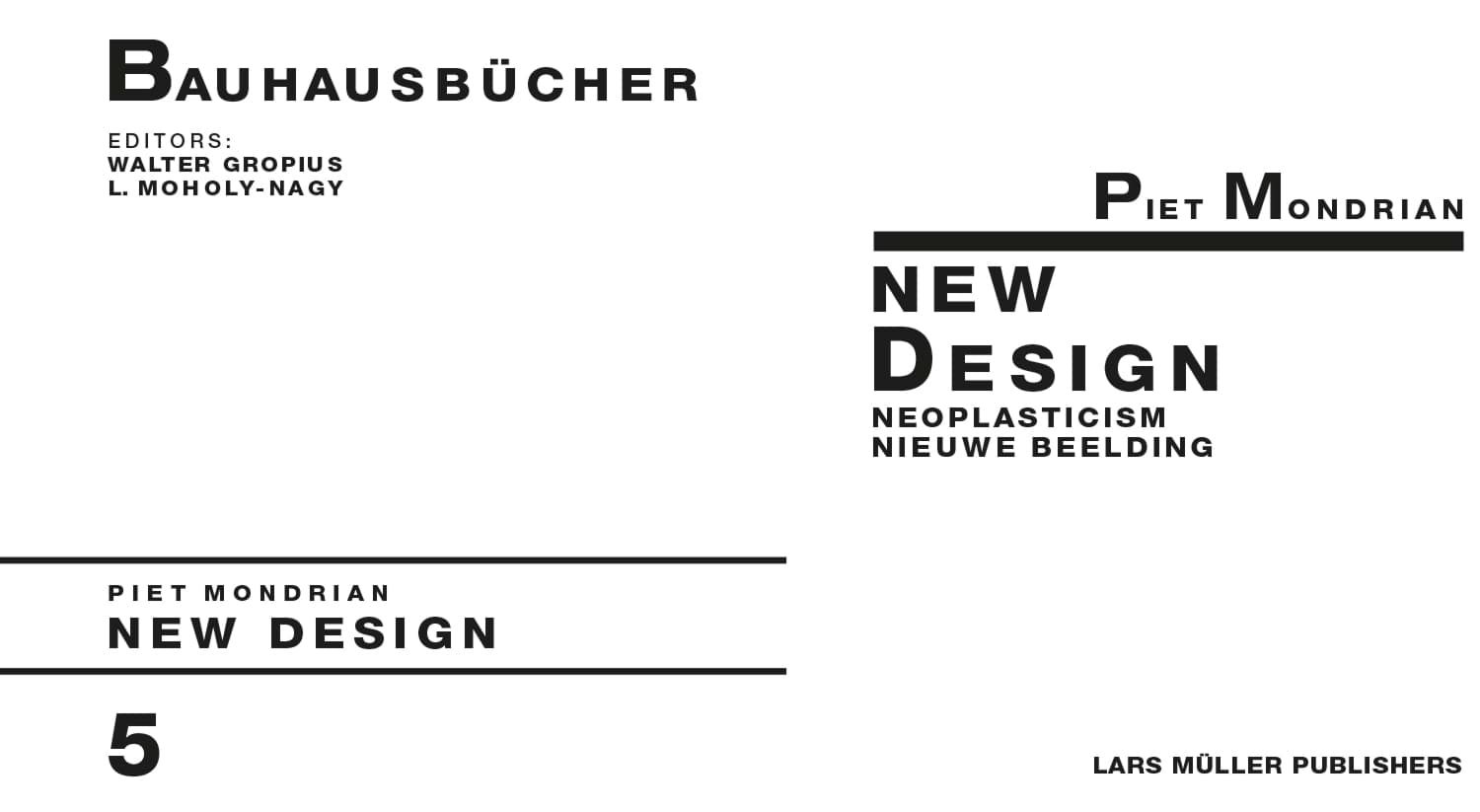 Although Piet Mondrian (1872–1944) was not an active member of the Bauhaus, his name is often mentioned in connection with the art school. Mondrian, cofounder of the De Stijl movement in the Netherlands, called for a strict reduction of visual language to orthogonal composition and primary colors, which met with great approval in Bauhaus circles. His rigorous geometric compositions of verticals and horizontals and strident palette of essential colors were important to numerous Bauhaus masters; Mondrian’s influence appeared in Bauhaus architecture, product design, typography, graphic design, painting and beyond. It is therefore not surprising that Mondrian’s essays on art theory, most of them written for the De Stijl journal, were translated into German and published as number five in the Bauhausbücher series. New Design starts with a philosophical foray into art, which Mondrian describes as a figurative expression of human existence—an expression which will find its natural conclusion in his own concept of a “New Design.” Mondrian then considers the relationship between painting and architecture and dares to take a far-reaching look at the future of Neoplasticism, which he imagines revolutionizing design and architecture around the world.
