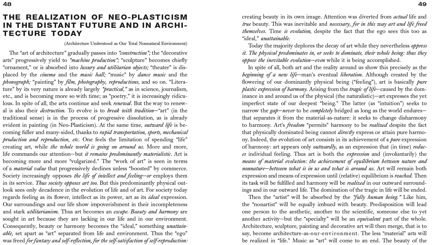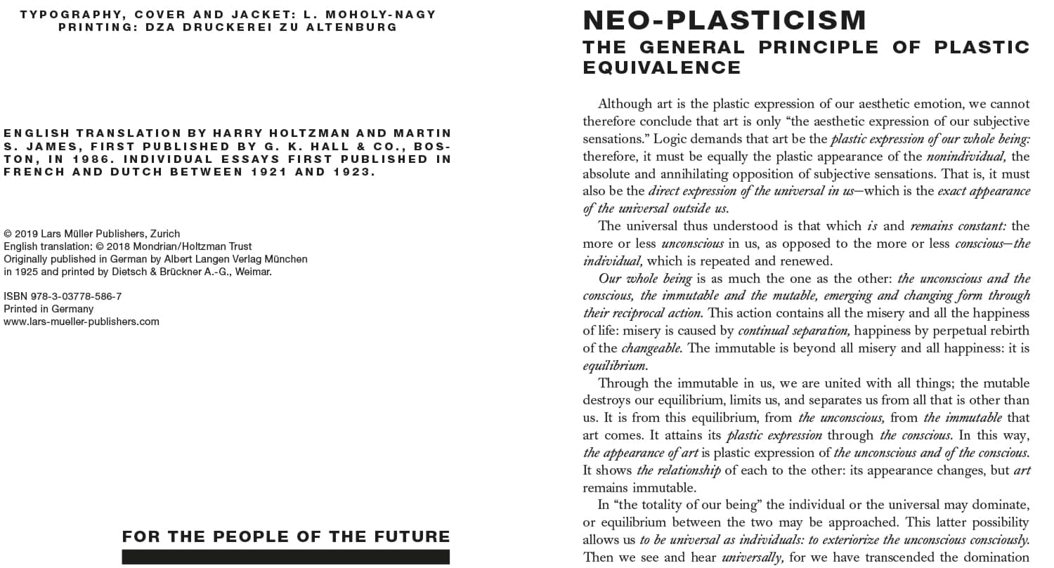 Harry Holtzman’s renowned translations of Mondrian’s selected essays appear in New Design as a complete compilation for the first time. The publication is true to the content and design of the German first edition of 1925 and includes a brief scholarly commentary.