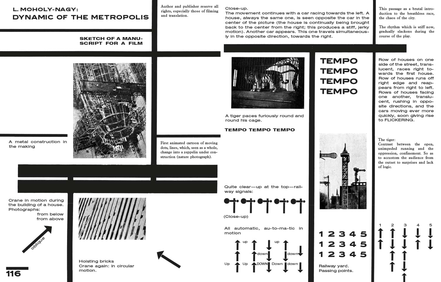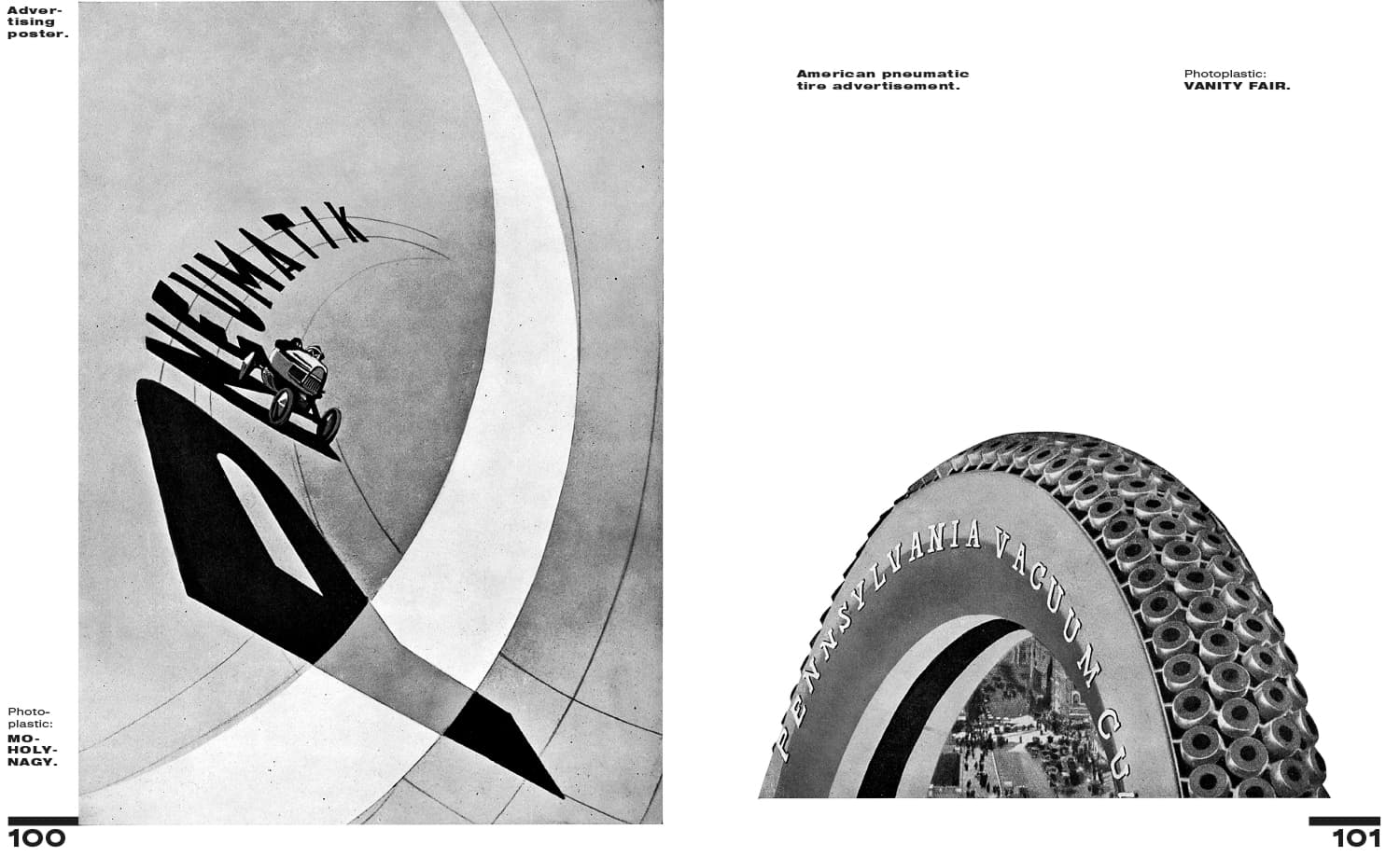 Alongside theoretical and technical approaches and forays into the nature of the medium, Moholy-Nagy uses an extensive appendix of illustrations to provide a thorough survey of the numerous possibilities that photography and film could offer—from press photography and scientific imagery to Moholy-Nagy’s own abstract photograms and New Vision photographs.