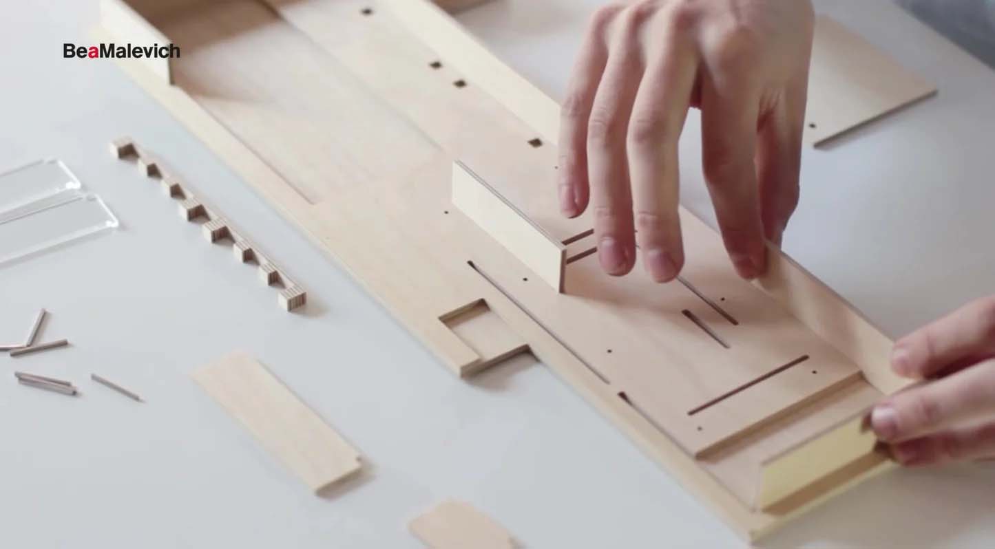 A "do-it-yourself" model made with birch plywood, methacrylate, and steel, detailed and easy to assemble.
