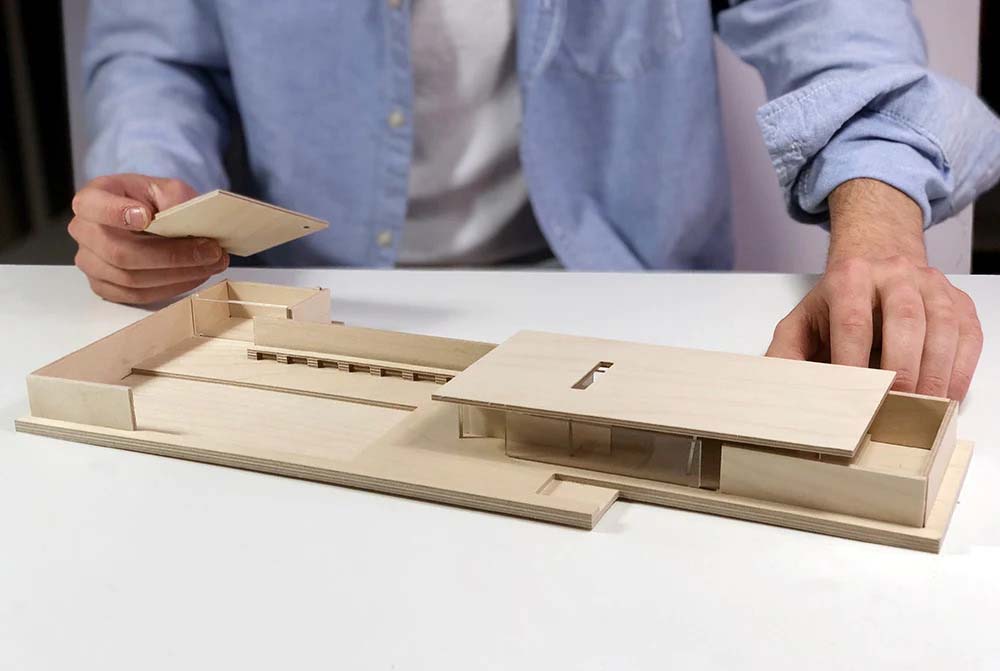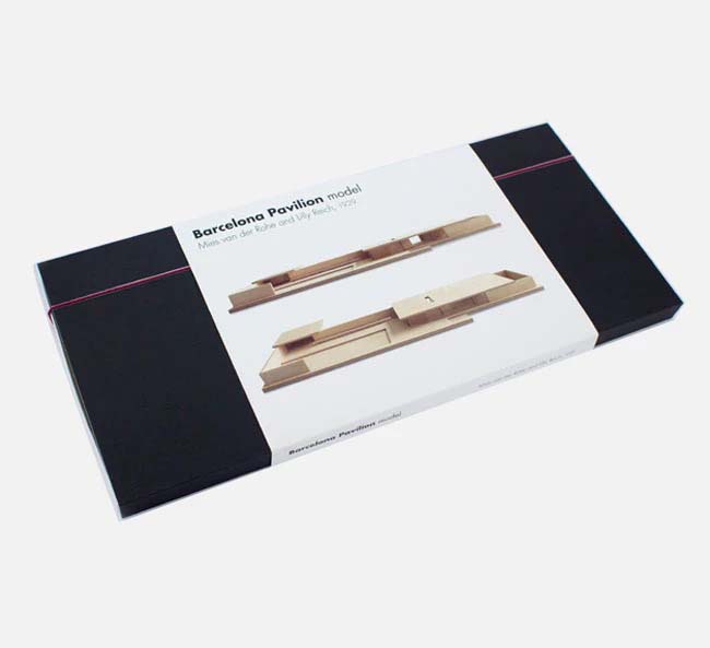 The Mies Barcelona Pavilion Model comes unmounted, with a total of 19 pieces, and it is the user's task to build it piece per piece following the instructions inside.