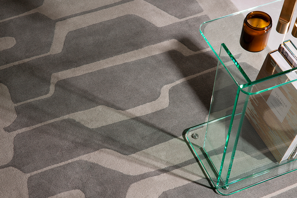 The geometric shapes and lines on the rug cross, interact and repeat with subtlety and accuracy.