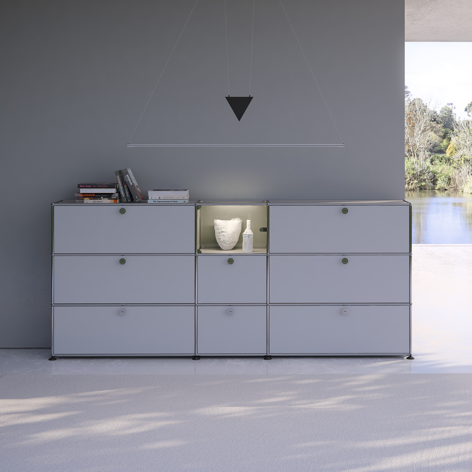 The versatility of the pendant light extends to its adaptability to various ceiling heights, as the lengths of the cords can be individually adjusted through a cleverly designed geometric counterweight. In the production of the Betec Filum, high-quality brass is utilized and subsequently treated with a glossy chrome finish. The pendant light is available in lengths of 89.1 cm, 119.1 cm, and 149.1 cm, with each variation boasting a slender width of 1.8 cm.