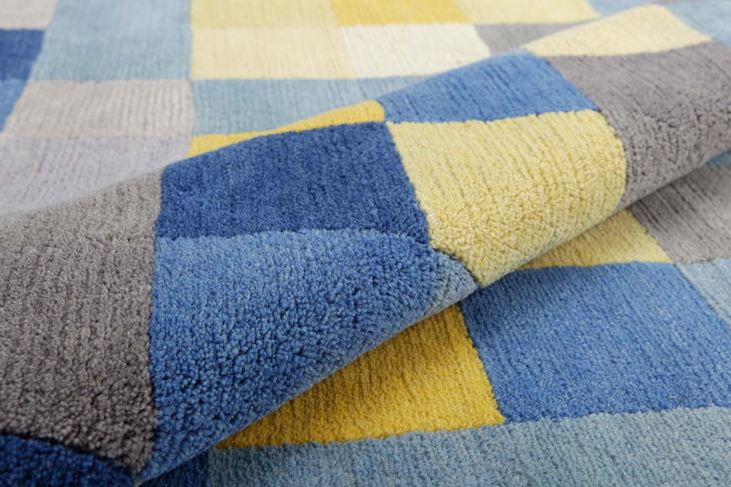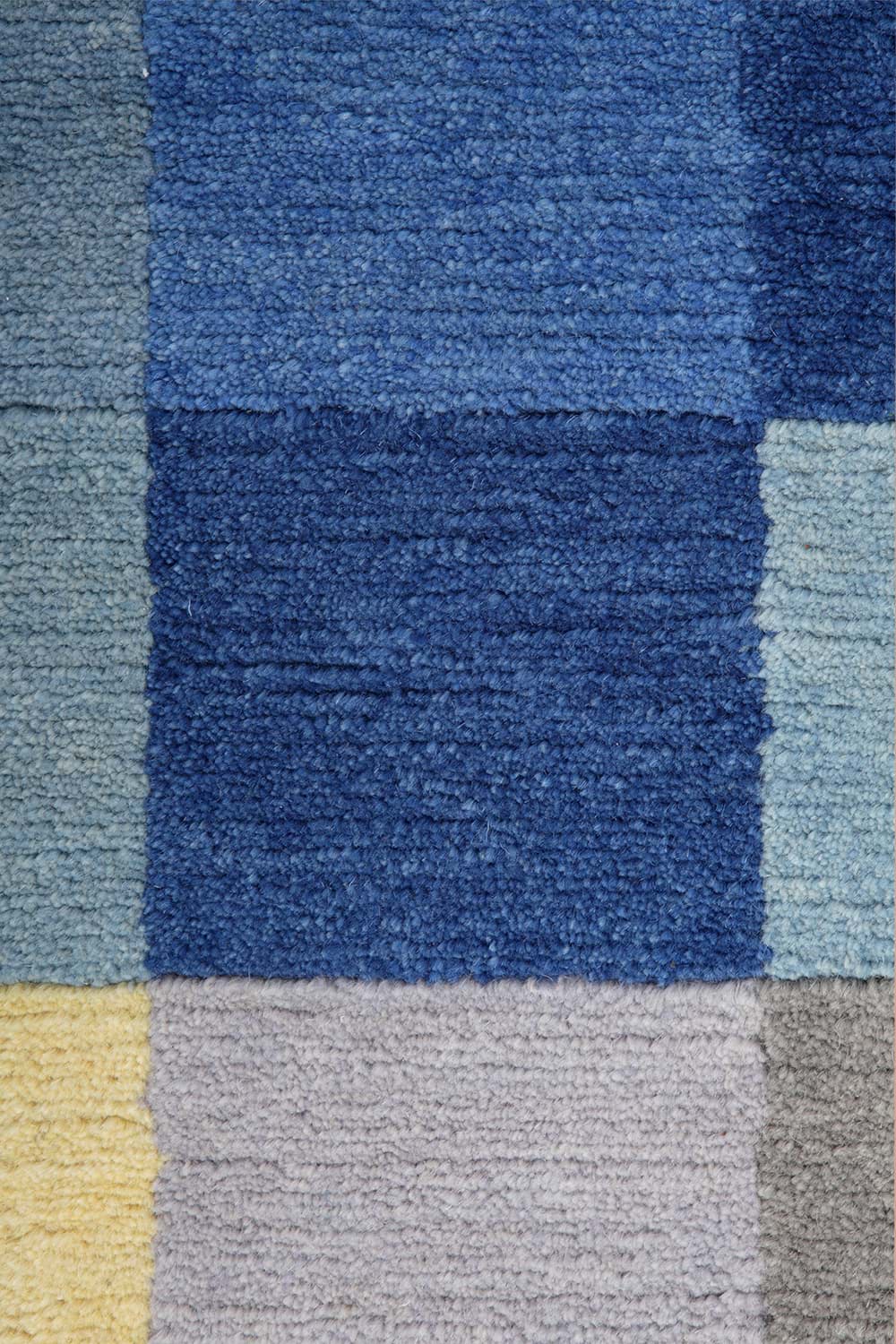 2 consists of 192 hand-knotted specifically arranged squares, the basic colour spectra are different shades of blue and grey, which are