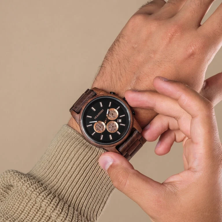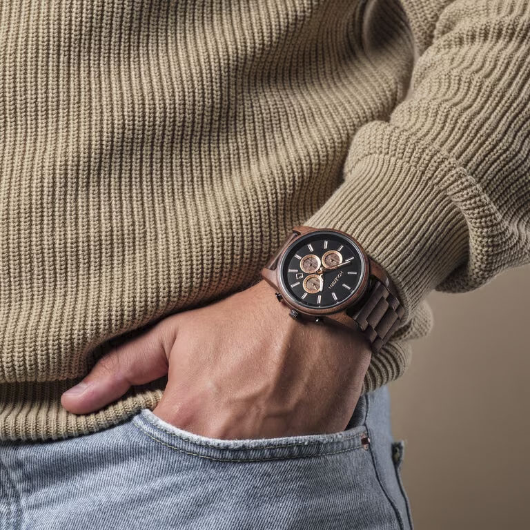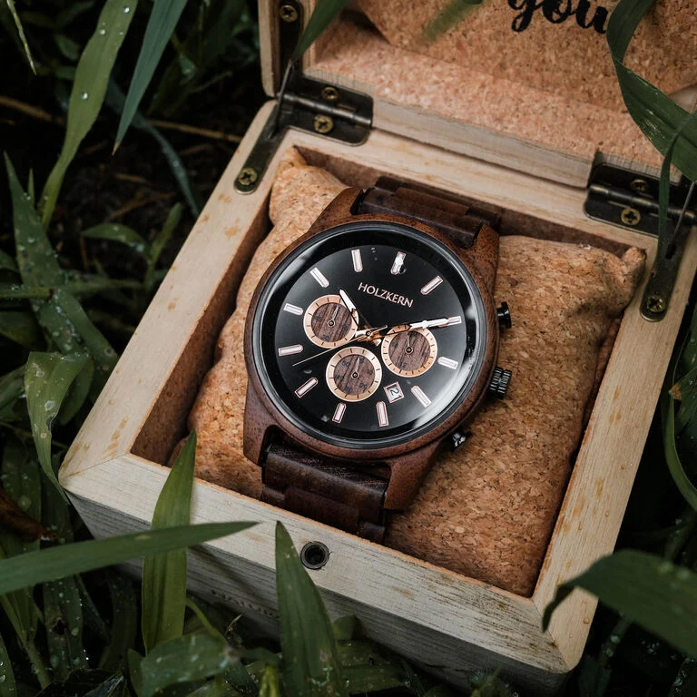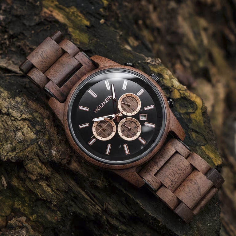 Herbstdämmerung a watch that captures autumn’s soul. Walnut & maple meet timeless design. Every piece tells a story of nature and style.