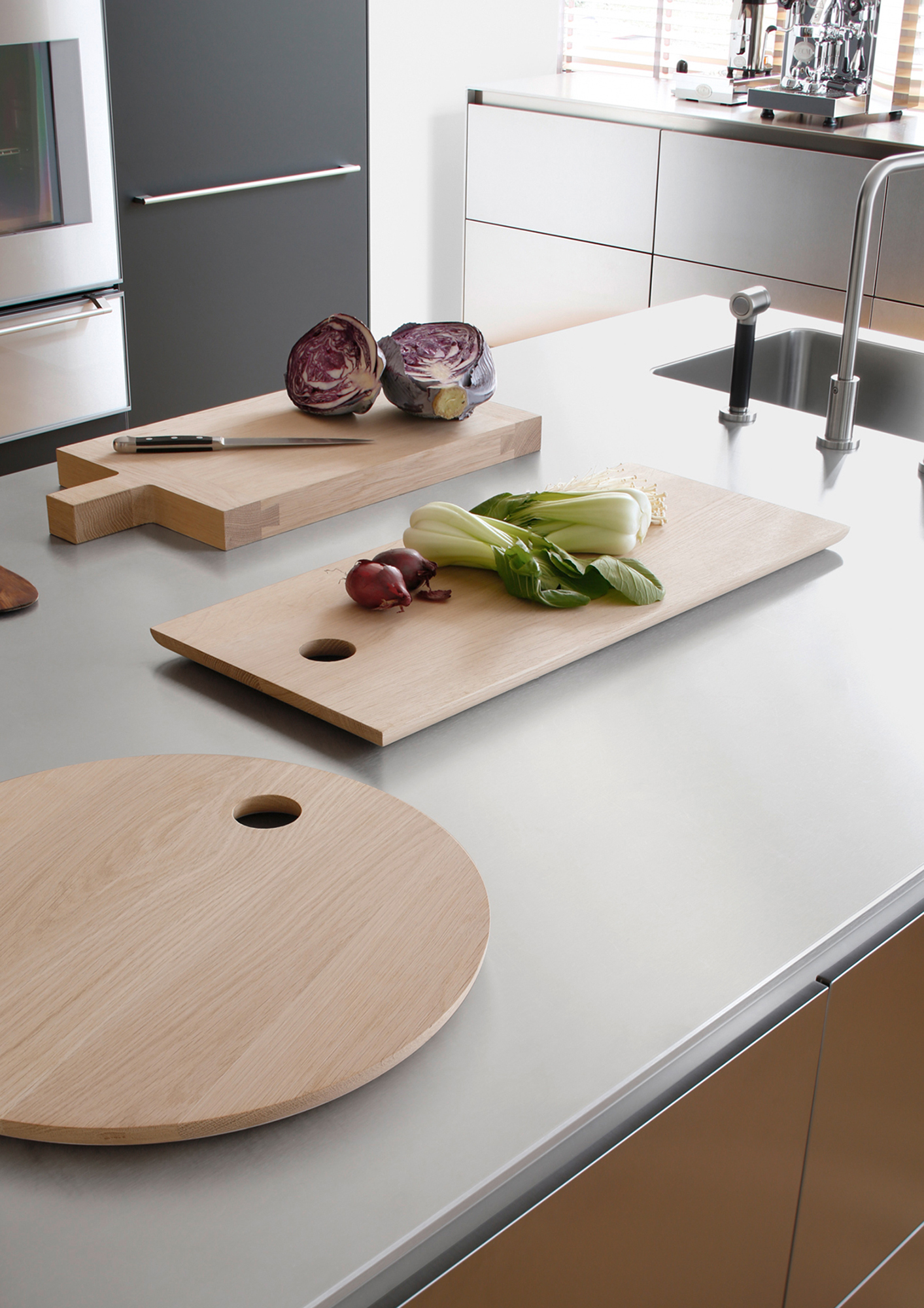 The CHOP chopping board is an aesthetic addition to any kitchen and at the same time offers a solid and reliable work surface for professional applications.