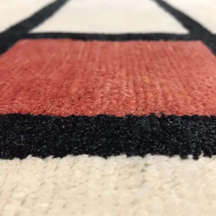 The geometric shapes and lines on the rug cross, interact and repeat with subtlety and accuracy.