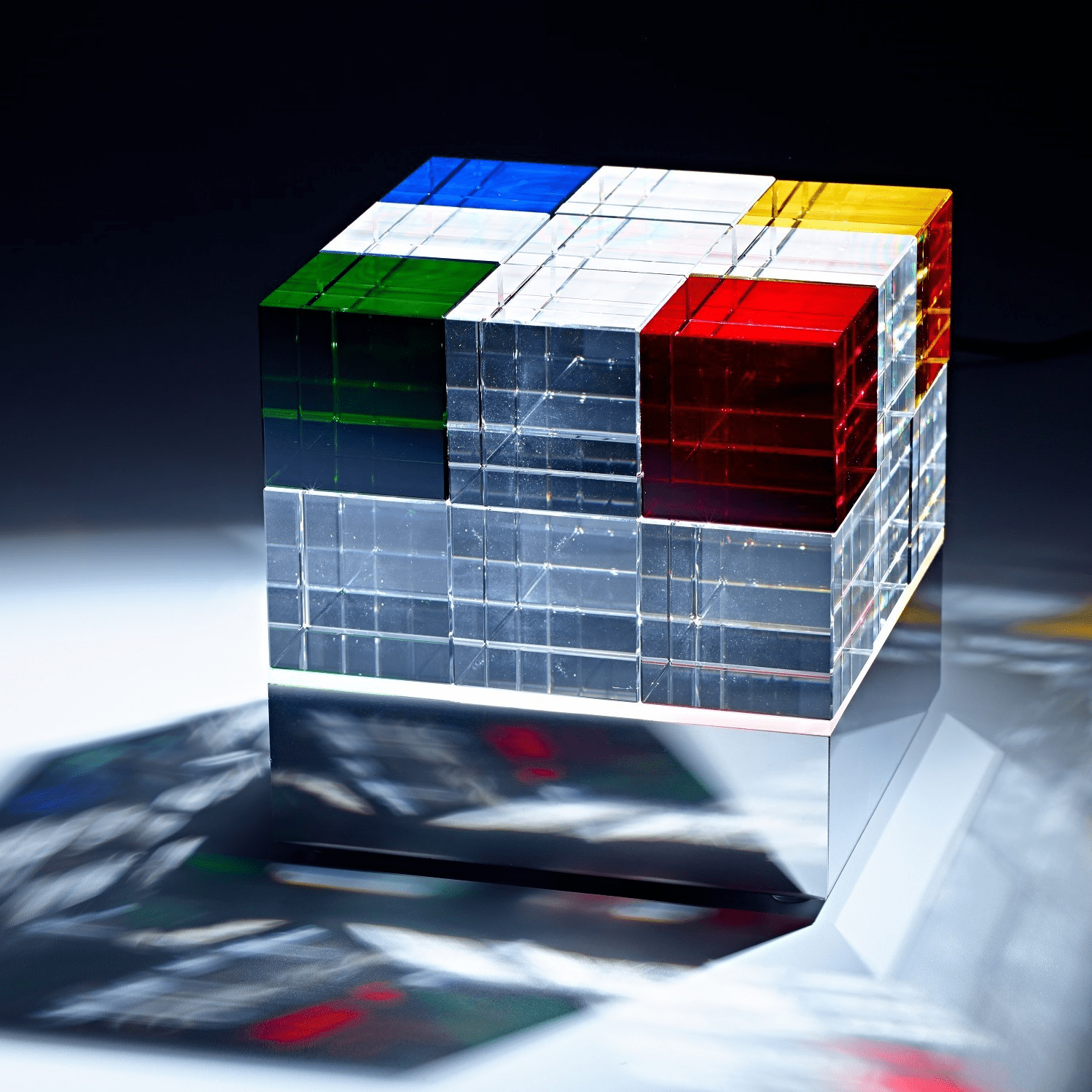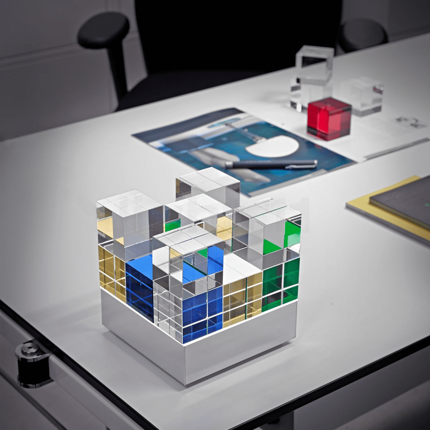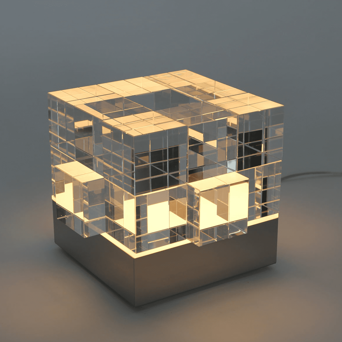 Even when it is switched off, the hand-finished sharpened and bevelled edges of the glass cubes and the