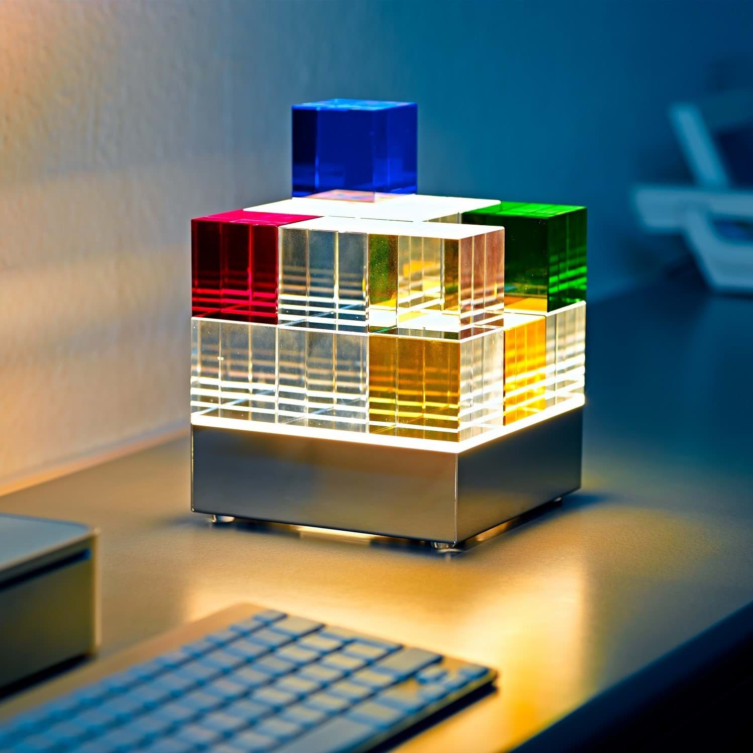 The decorative “Cubelight” lighting object comes with 18 cubes made from real glass. These can be arranged