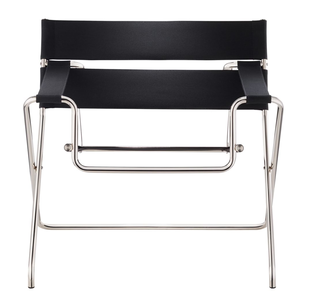 A feeling for beauty paired with functionality. This combination is the hallmark of many Marcel Breuer designs, especially the D4 (formerly B4). The collapsible tubular steel lounge chair with straps was created in 1926/27 and advertised in Breuer’s first tubular steel catalogue as “particularly suitable” for ships and sports grounds as well as for patios, summer houses, gardens and garden cafés. This sporty, airy ambience has inscribed itself into the design, and the D4 still looks light and springy today.