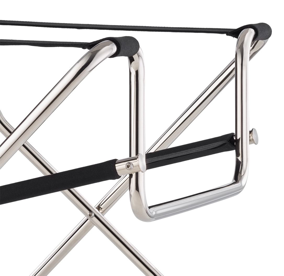 Improved until no further enhancement was possible. Pared down to the essentials, its minimalism incorporates the motif of movement in that it could be folded, stowed away and easily transported. Due to the more economical use of tubular steel and elimination of the lateral seat straps, it consumed less material while affording the sitter much greater comfort.