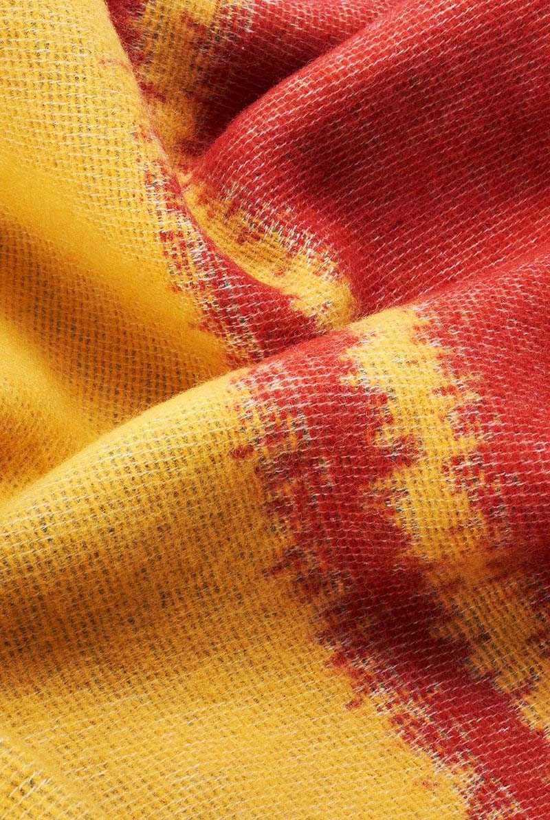 “Dye” by Michele Rondelli is inspired by the fascinating and vibrant ikat dying technique. This joyful blanket gives the impression that colors are flowing and mixing each other.
