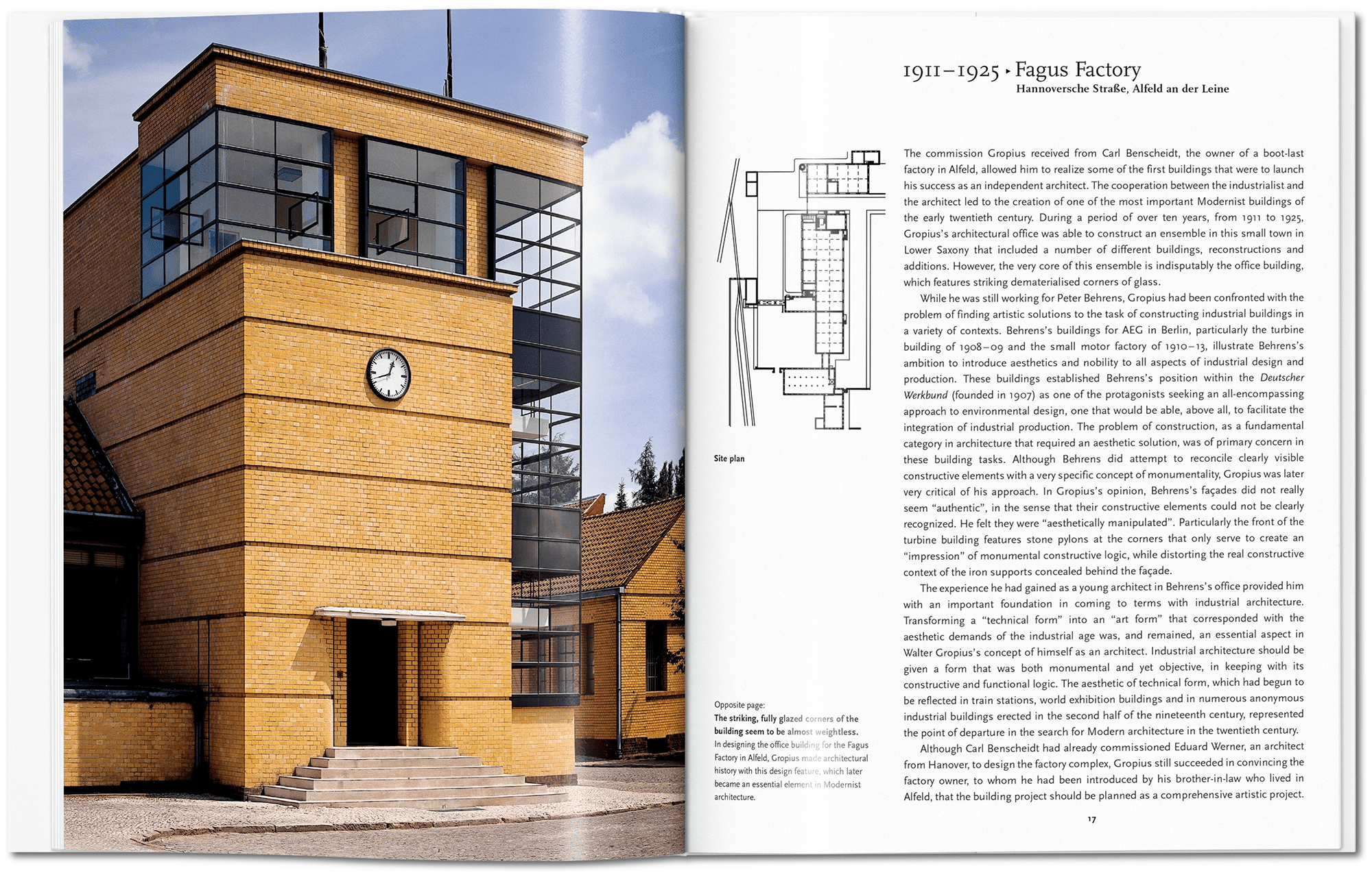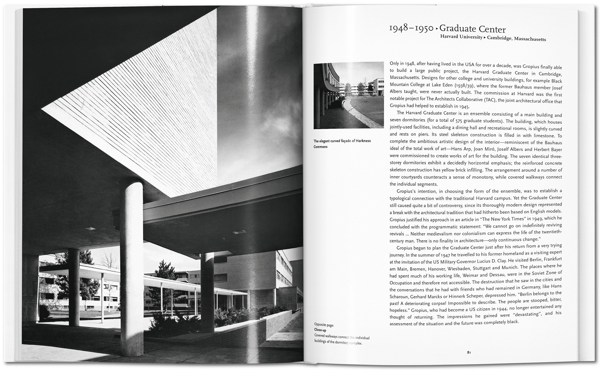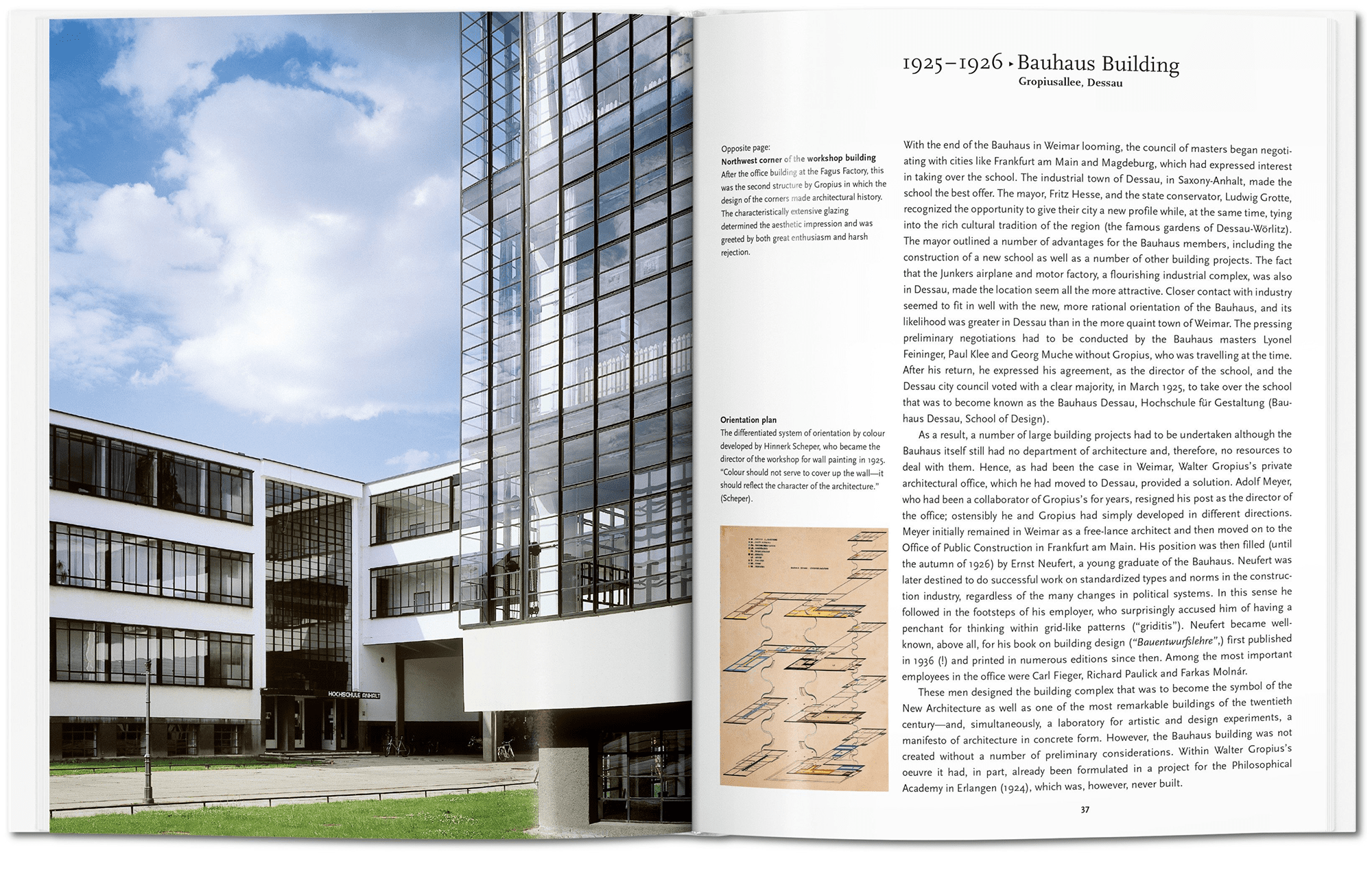 In this introduction, we examine the development and influence of this great visionary of the 20th century through twenty of his most important projects, from the Bauhaus building in Dessau to the Siemensstadt housing estate, to the Harvard University Graduate Center and the Gropiusstadt in Berlin. We are concerned with his role as a master builder, writer and teacher, not only as a pioneer of the Bauhaus, but also - together with Ludwig Mies van der Rohe - as a leading representative of the international style.