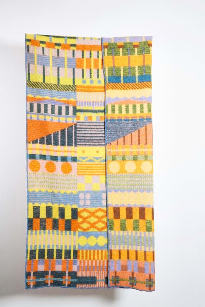 The 'Gunta' woollen blanket finds its inspiration in the Bauhaus period and the work of the Bauhaus weaver - master craftswoman Gunta Stölzl. The ceiling is a tribute to her magnificent work, which is characterised by the translation of modern art into textiles. Bright colours and geometric shapes characterise this ceiling. A tribute to the 100th anniversary of the Bauhaus era.