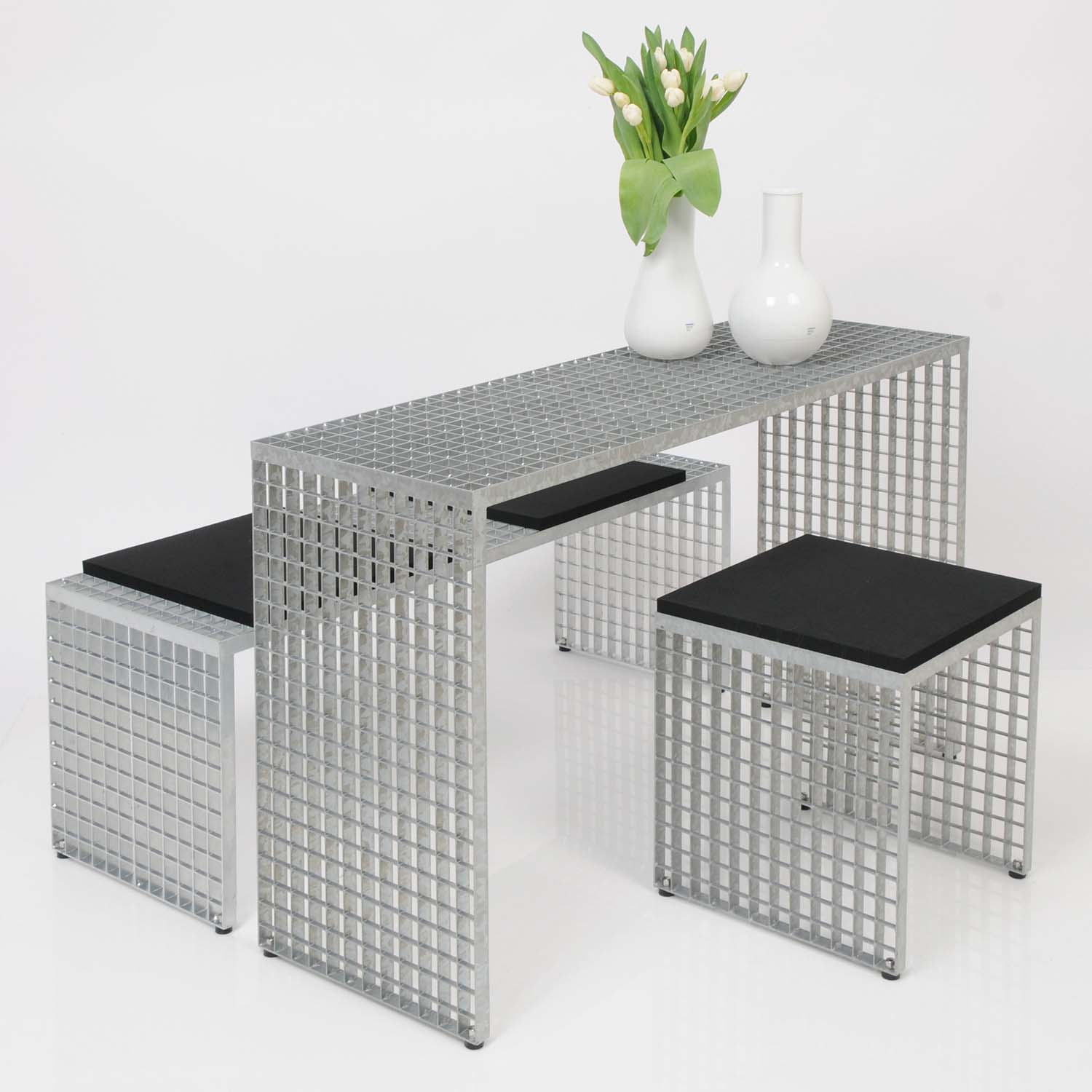 Habit's "Skwer" collection is an impressive alternative to traditional wooden or plastic outdoor furniture. This collection, consisting of a table element and a trolley on wheels, remarkably combines elegance, robustness and functionality. What sets the "Skwer" collection apart from other garden furniture is the material used. The furniture pieces are made of hot-dip galvanized steel, which gives them exceptional durability and resistance to all weather conditions.