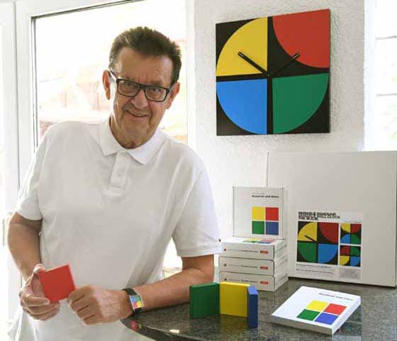 True to straight lines. A play on the forms of life-circle, square and triangle. Max out, fathom-what works, what hasn’t been there yet. What is possible, without moving away from clarity and that which is concrete. Experimenting with colors, and materials. There is a curiosity, towards new forms and other combinations. Maxing out material-how and where is the work influenced and what can I get out of this. Discover new spaces, perception and displays. Ever surprising with the infinite diversity of concrete art. This is how one can briefly characterize the diversity of Hans Karl Zeisel’s work. He has found success again in this interactive book in a creative and impressive way.