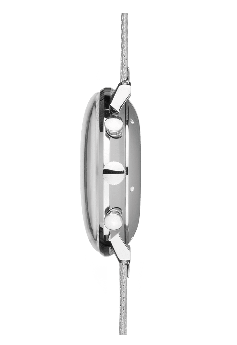 Max Bill Chronoscope - As with all pieces in this collection, the design of the mechanical max bill Chronoscope is highly impressive due to its focus on the bare essentials. This can be evidenced in the plain, minimalistic design of the dial. Relinquishing display of the small seconds creates a particularly striking symmetry.