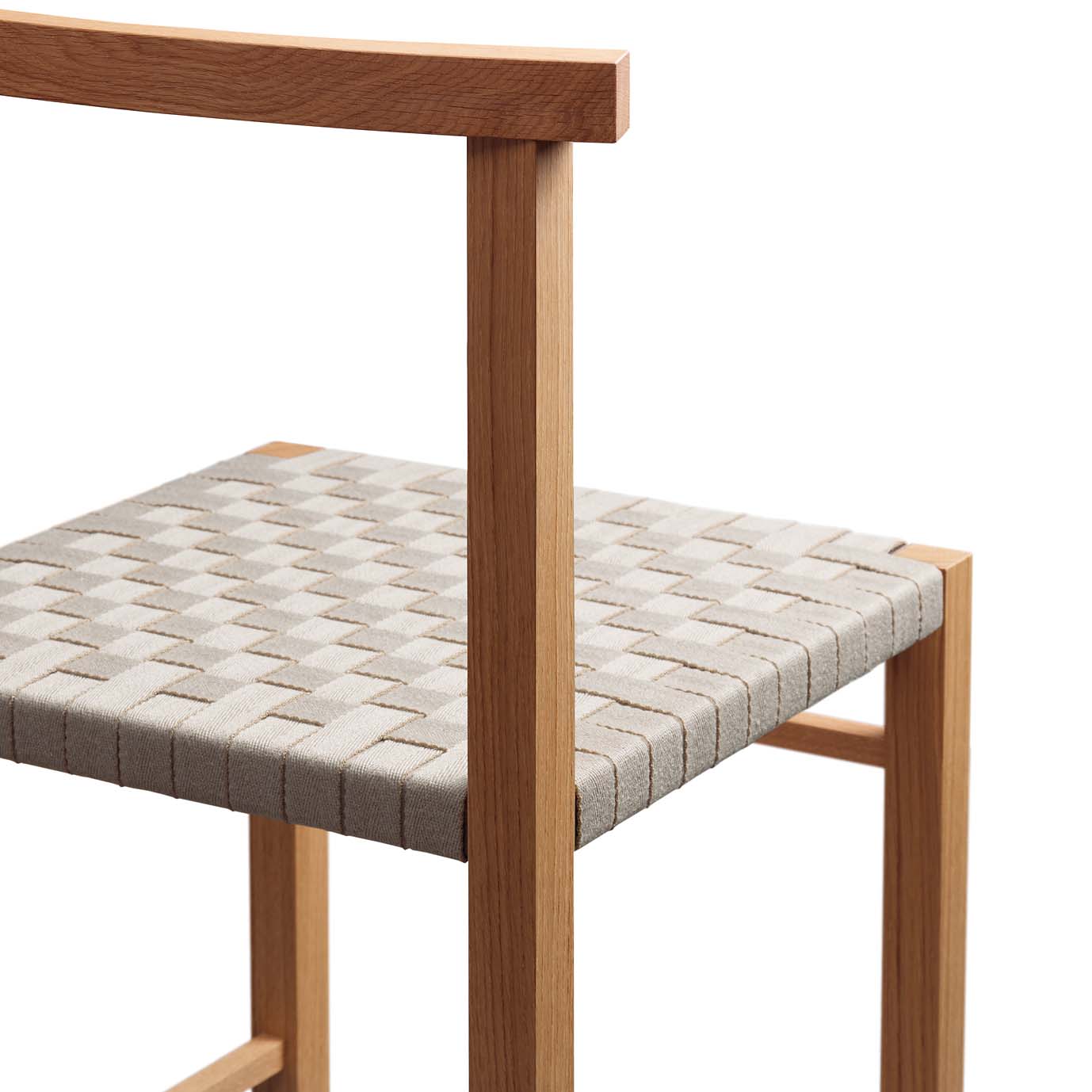 Designed in 1925, the elegant and archetypal chair KARNAK features Ferdinand Kramer's masterful grip on simplicity. Available in waxed solid European oak or walnut, the linear profile of KARNAK is boldly reduced to the essentials, featuring a gently curved backrest and hand-woven seat, providing considerable comfort. The woven seat is finished in a textile band or vegetable tanned leather, which is luxuriously soft and will patinate with exposure to direct light. With its spare and refined aesthetic the chair KARNAK is a signature piece suitable for diverse environments. Its frame is fitted with a steel profile for additional stability. KARNAK perfectly complements all tables in the e15 collection and is delivered as one piece.