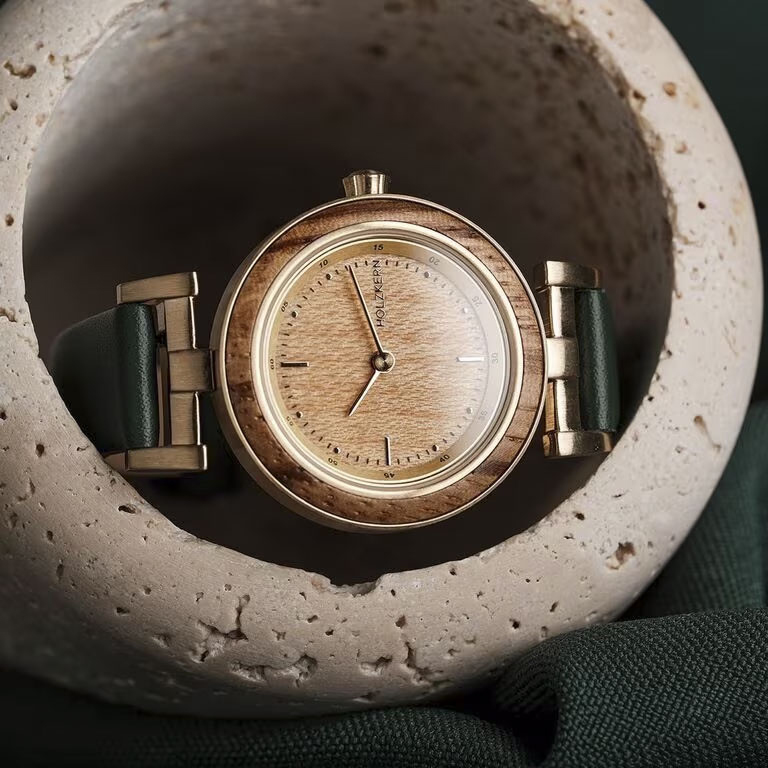 Herbstdämmerung a watch that captures autumn’s soul. Walnut & maple meet timeless design. Every piece tells a story of nature and style.