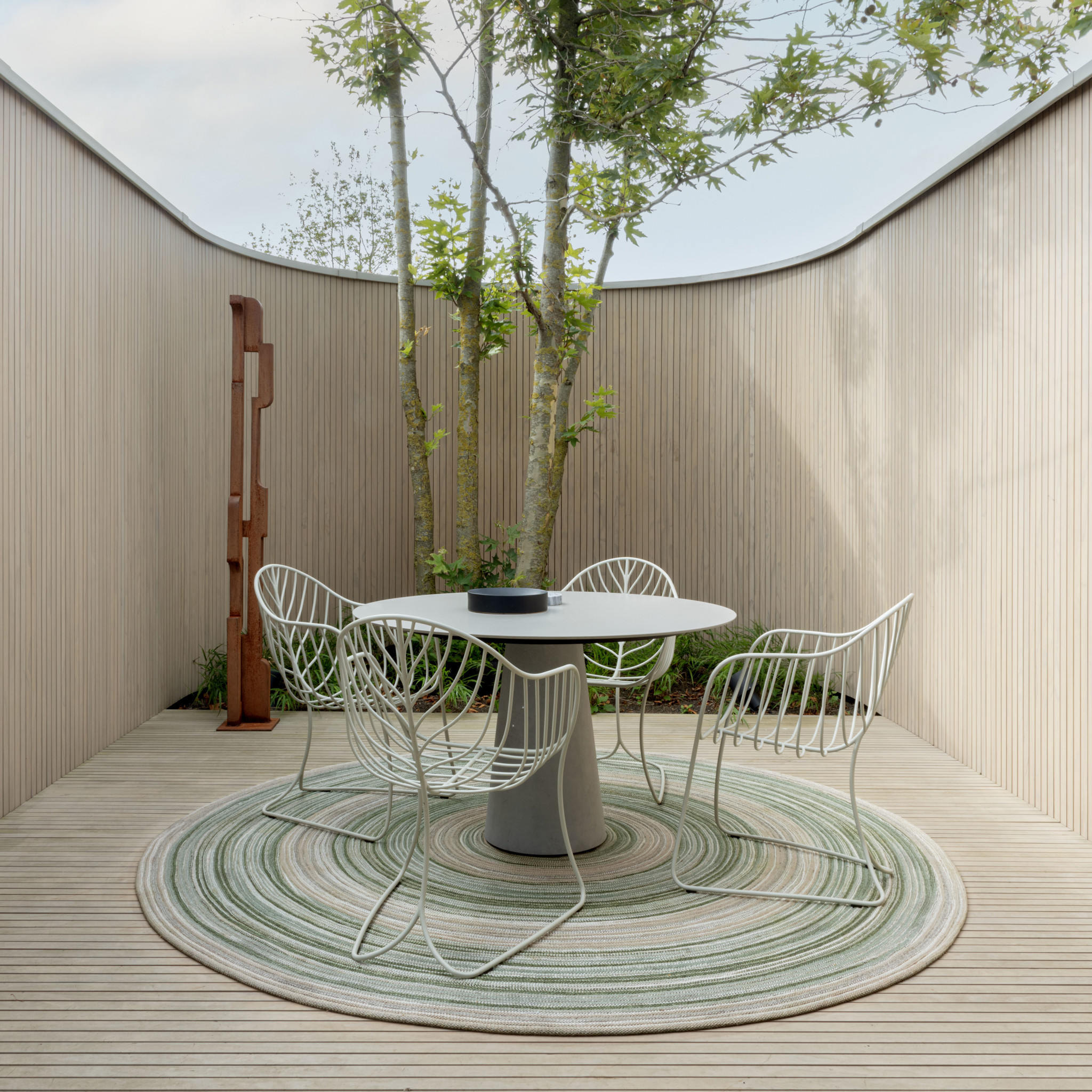 The Beluga Rug is crafted from durable polypropylene with precise braiding, offering lasting strength and a clear look—perfect for both indoor and outdoor use.