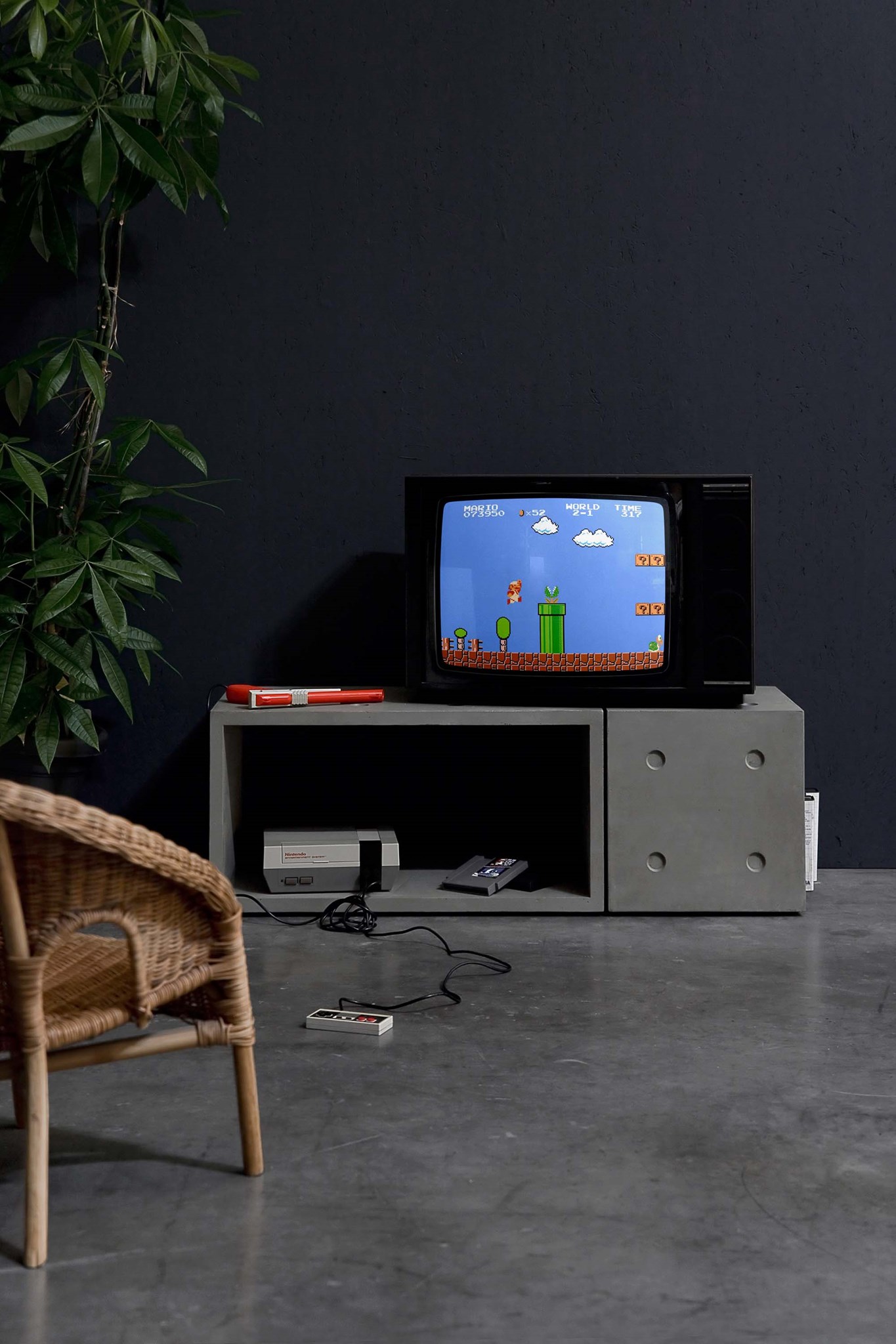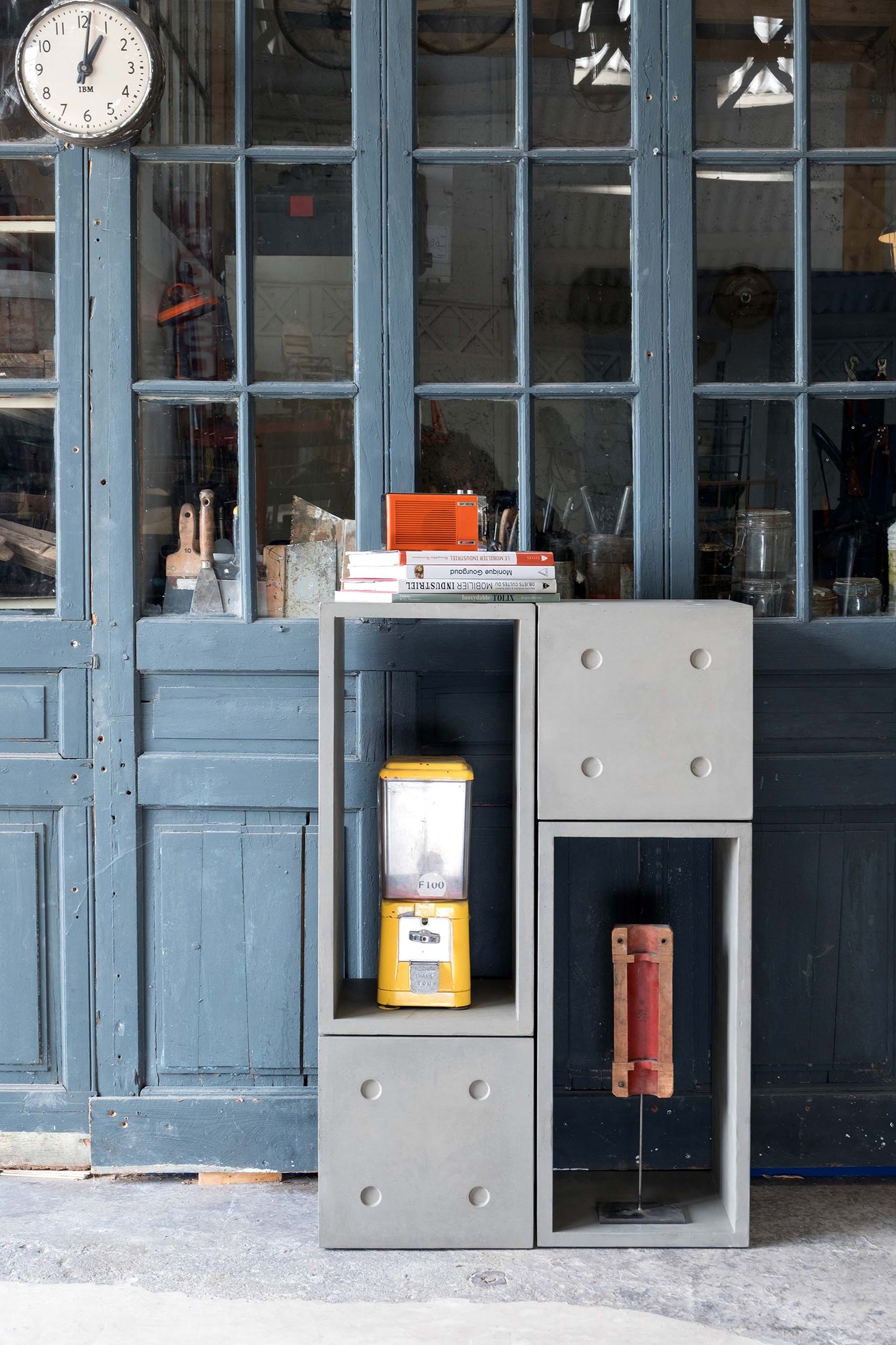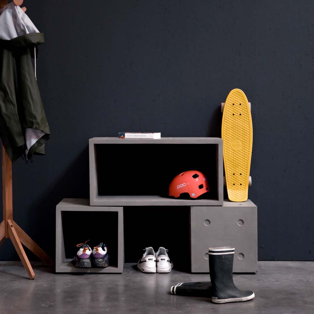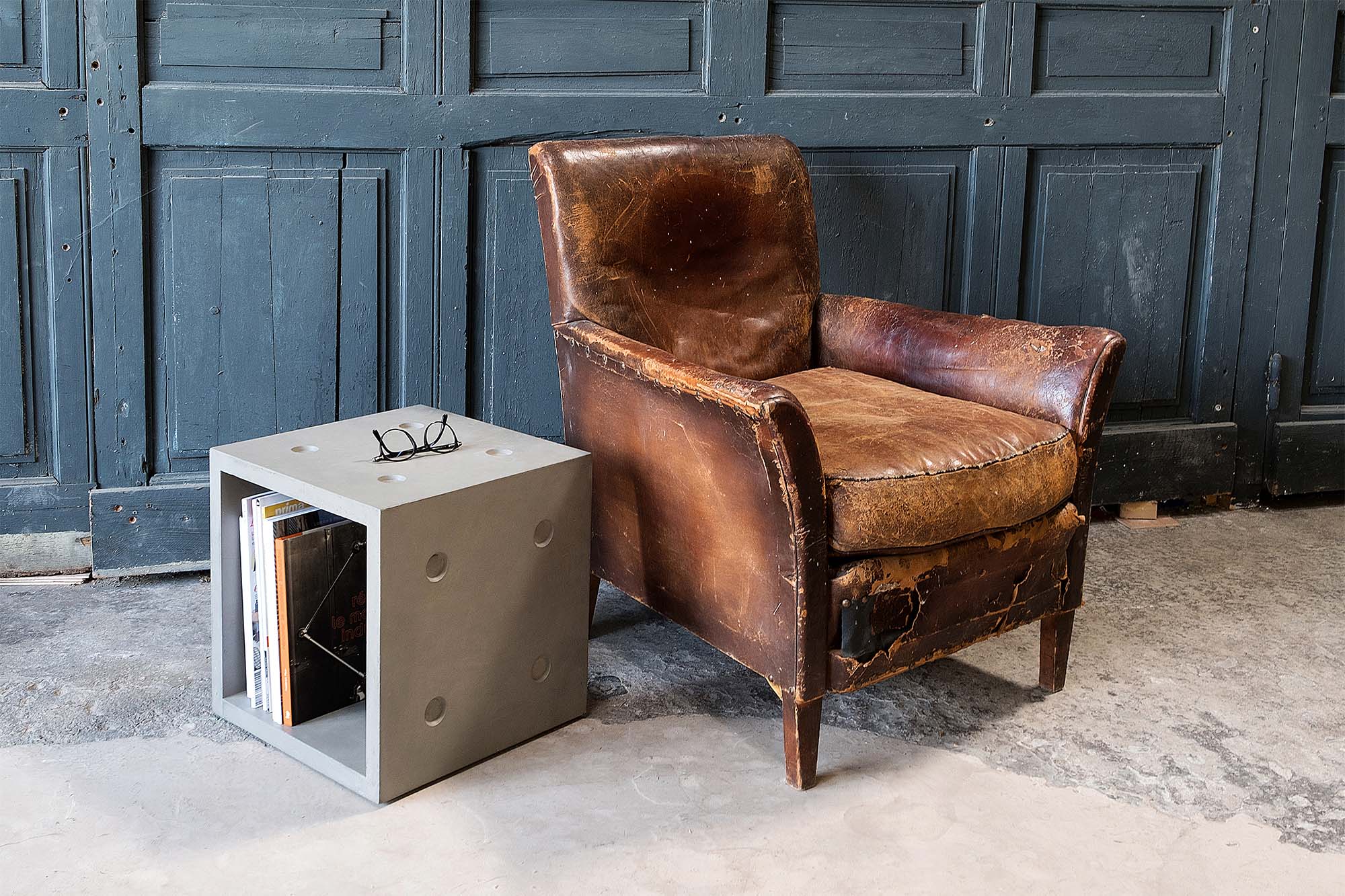 The perfect concrete storage module to organize your space by creating a side table, a coffee table or a side table.