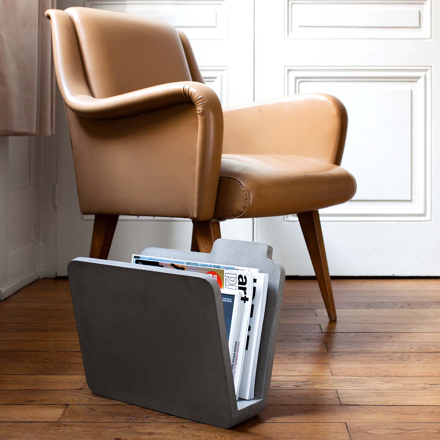 The Concrete Magazine Rack is designed by Bertrand Jayr for Lyon Béton. Made in the shape of a computer file icon, this fun and practical concrete magazine rack looks great next to a sofa or a desk. The Doc introduces a comical return to paper while stressing the importance of the digital world into our daily lives. Utilize the space saving attributes of the design magazine rack to organize and display your magazines via a tastefully modern and artful concept.
