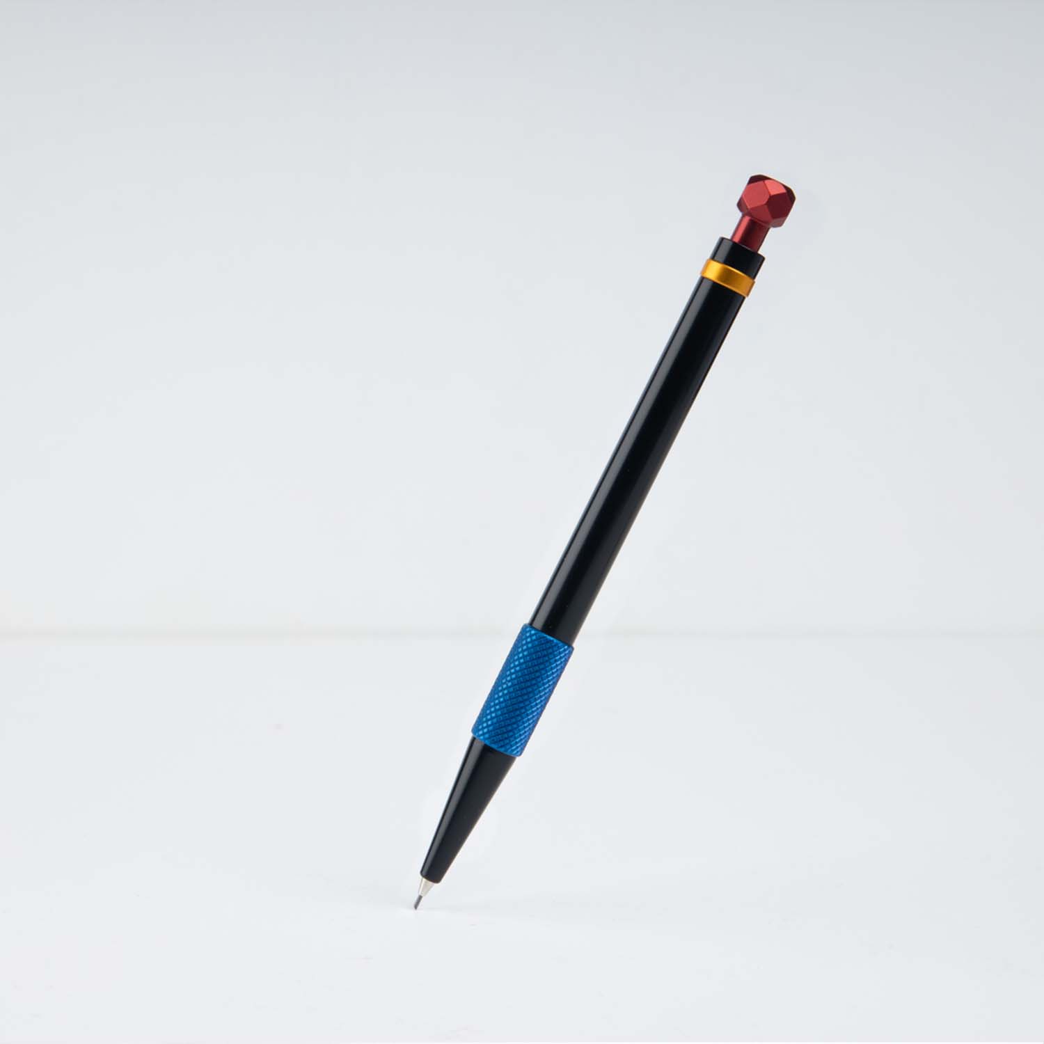 The design is true to the Bauhaus Movement principles, aiming in simple shapes and geometric forms. The initial goal has been to reproduce the feeling of handling a well made precision instrument. The Pencil is a captivating piece of engineering, precision milled from a solid piece of Aluminum with minimal use of material, pushing the boundaries of what a milling machine can do. After it is processed to achieve its perfect finish, it is patiently assembled and finished by hand.