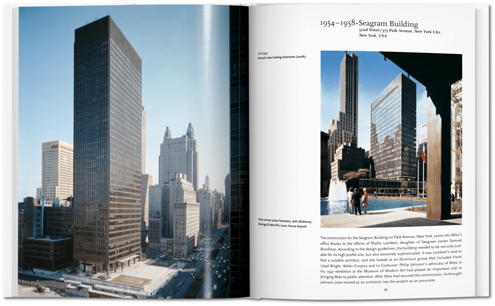 of an elementary truth. Using modern technology and the latest materials, he designed buildings of purist simplicity such as the Seagram