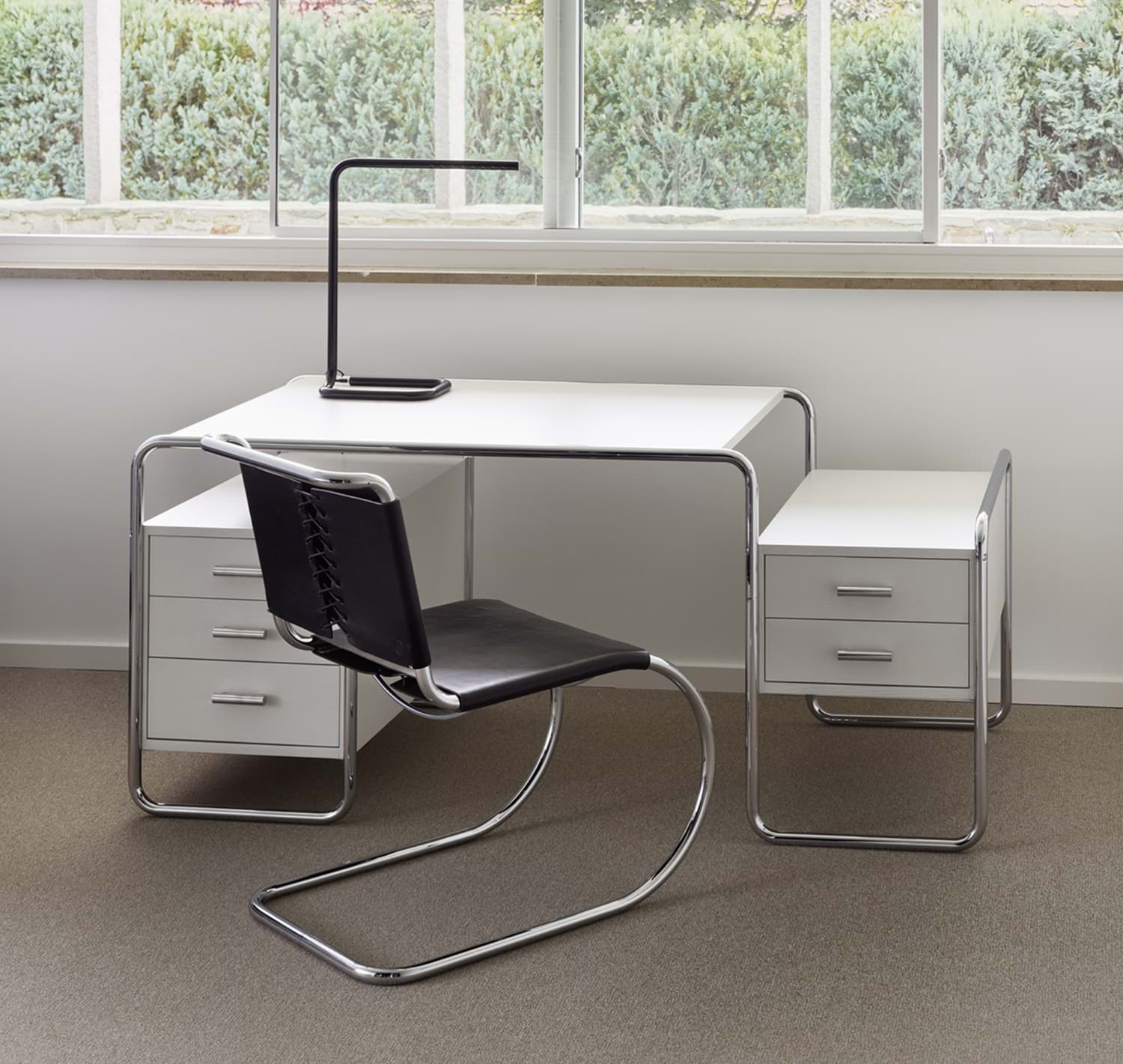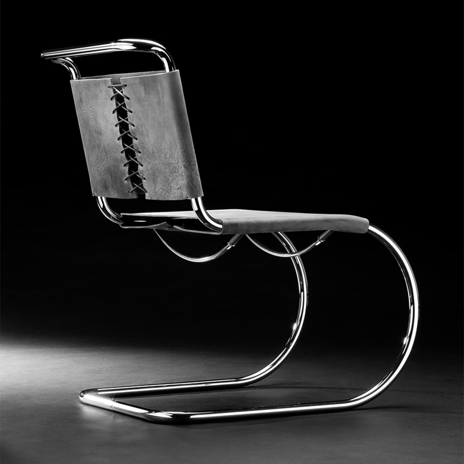 Technology becomes furniture; a striking invention becomes an elegant interior design object. Ludwig Mies van der Rohe was the first to provide the cantilever chair with aesthetic lightness and to relate it to its environment with curved lines. In the run-up to the Weissenhof Estate exhibition, which he organised, Mies van der Rohe became familiar with the principle of the cantilever chair thanks to Mart Stam. As new as this approach may have been, Mies van der Rohe was not impressed with its first implementation by Stam. He immediately answered the technological innovation with his own aesthetic solution, which he was able to present in 1927.