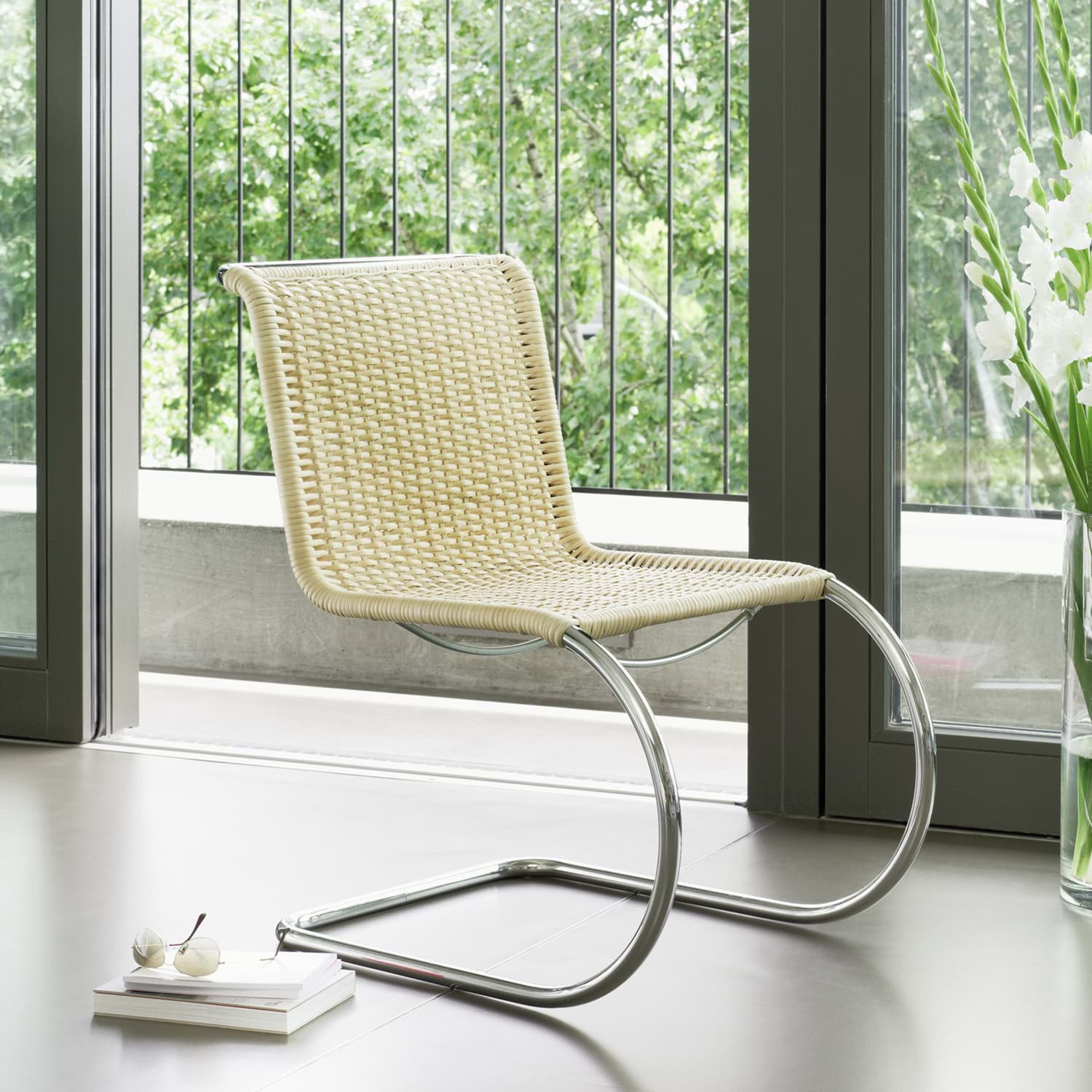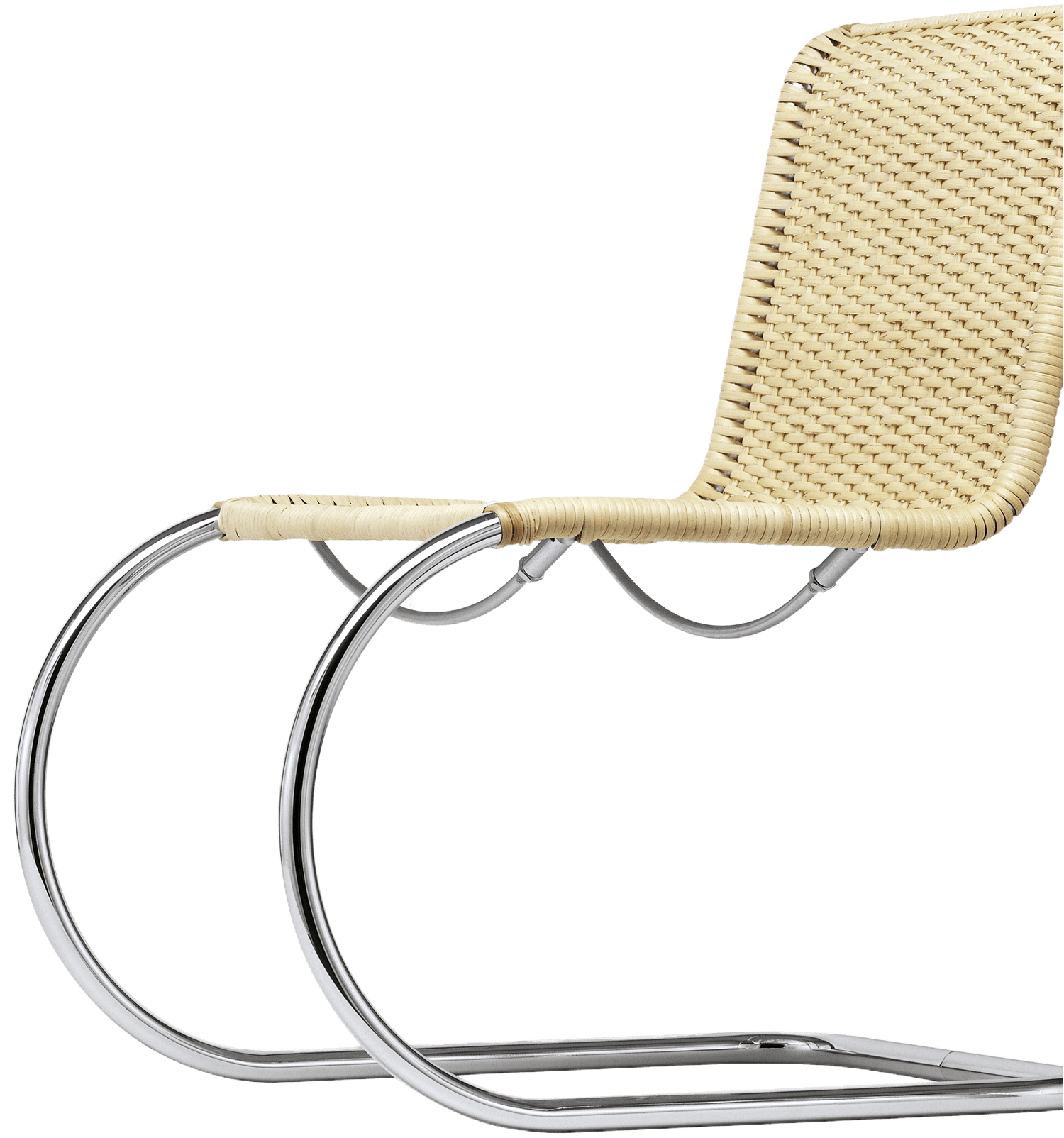 Technology becomes furniture; a striking invention becomes an elegant interior design object. Ludwig Mies van der Rohe was the first to provide the cantilever chair with aesthetic lightness and to relate it to its environment with curved lines.