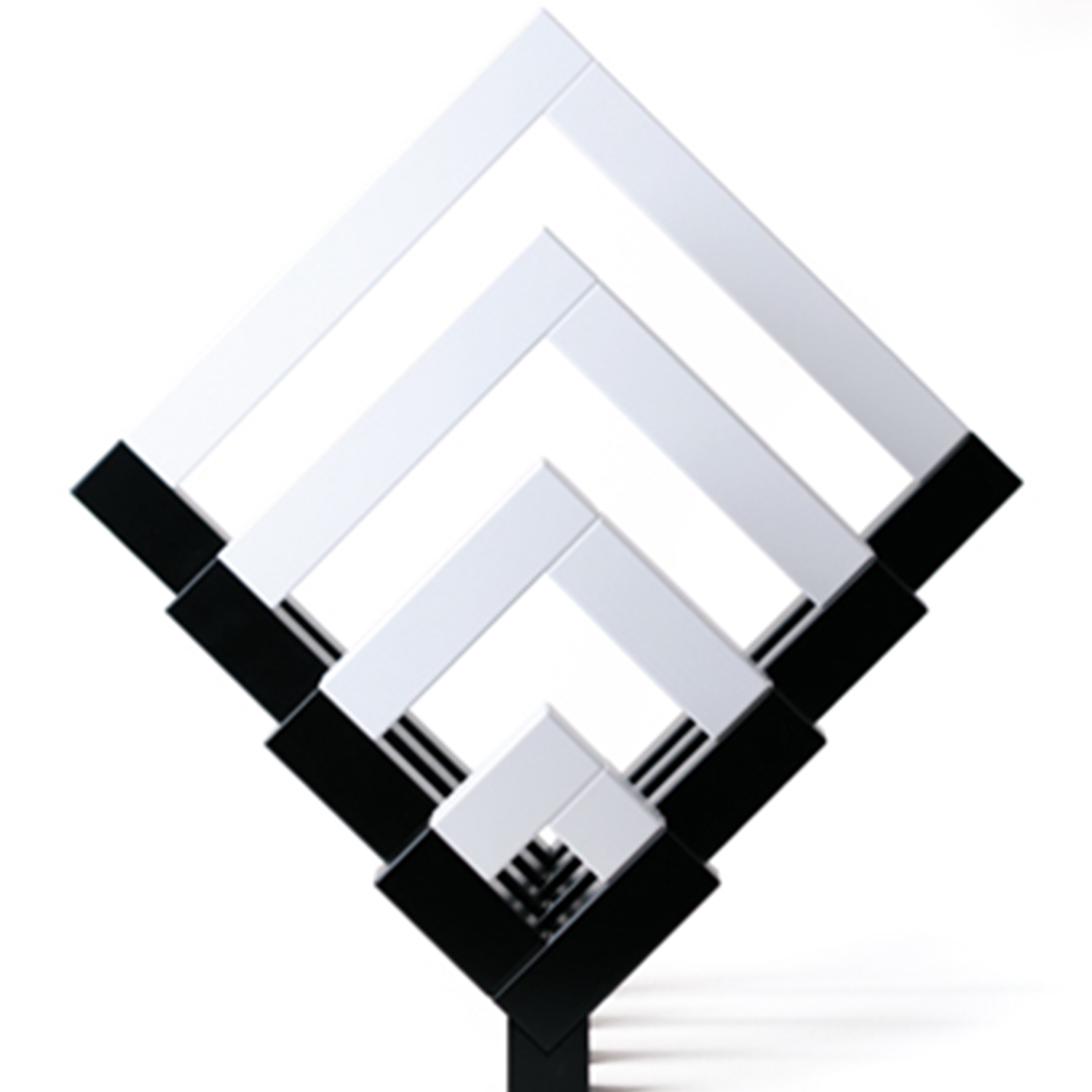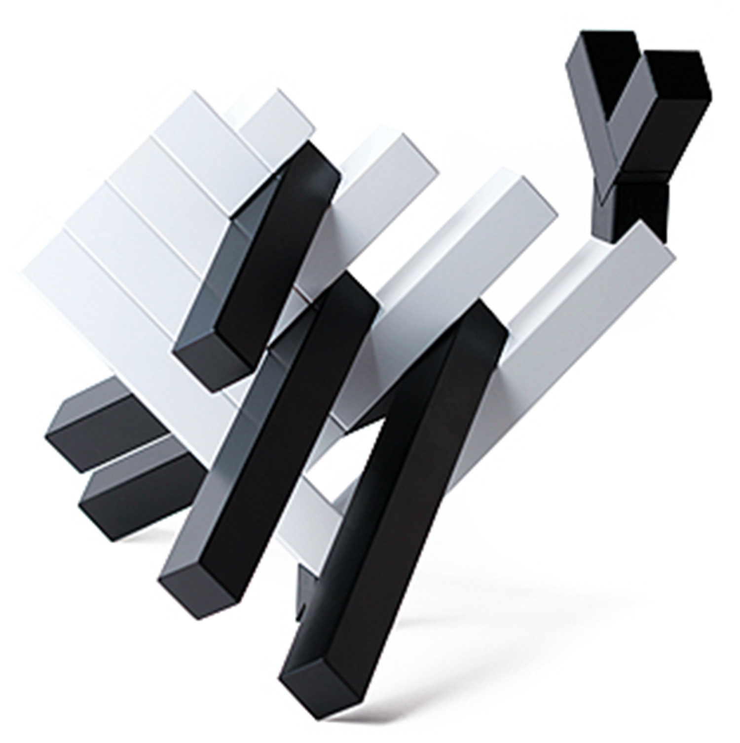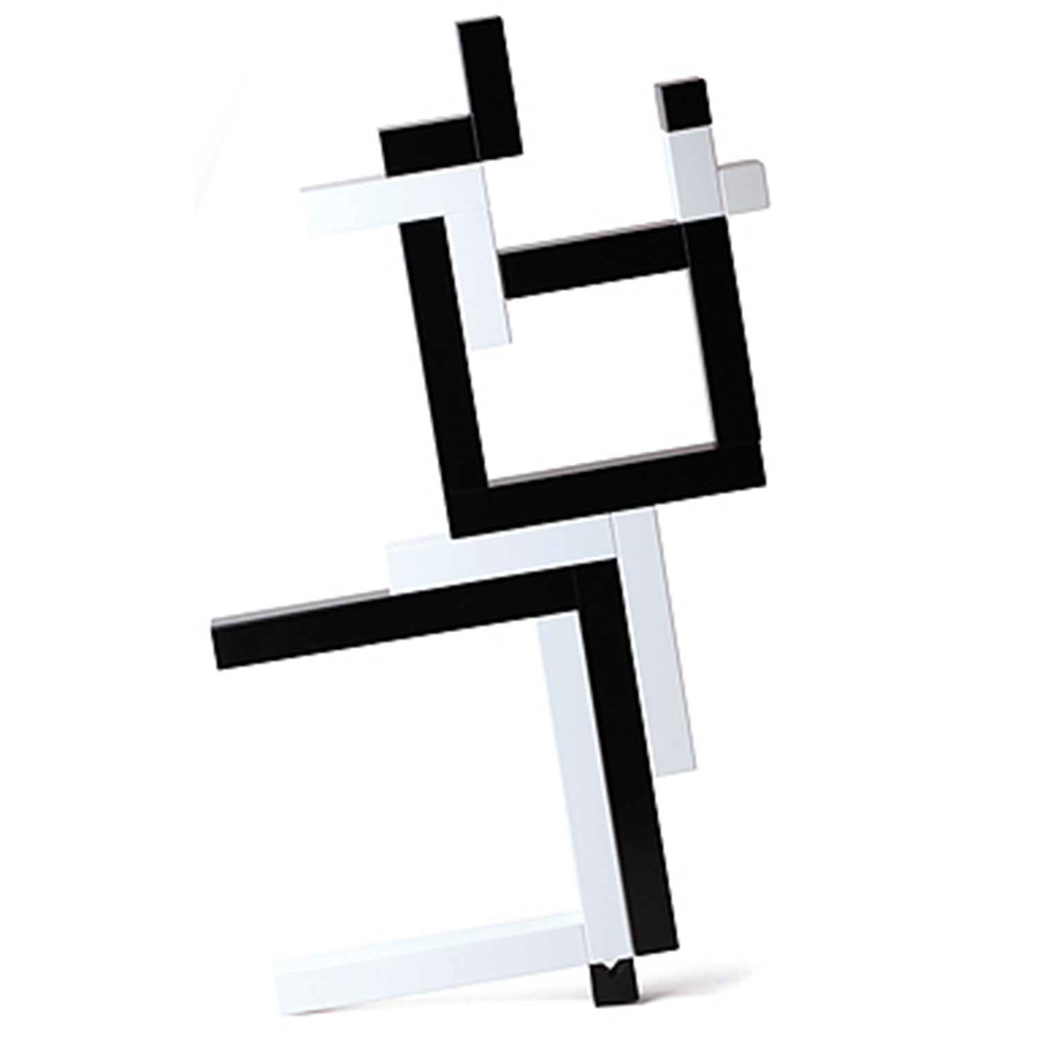 Light and dark meet directly in this version of Angular and seem to split the object. The interplay creates a special liveliness, almost like the natural model in the steppe, the zebra. Against a bright background, the black angles reign, but when it gets dark, the white shapes show their presence.