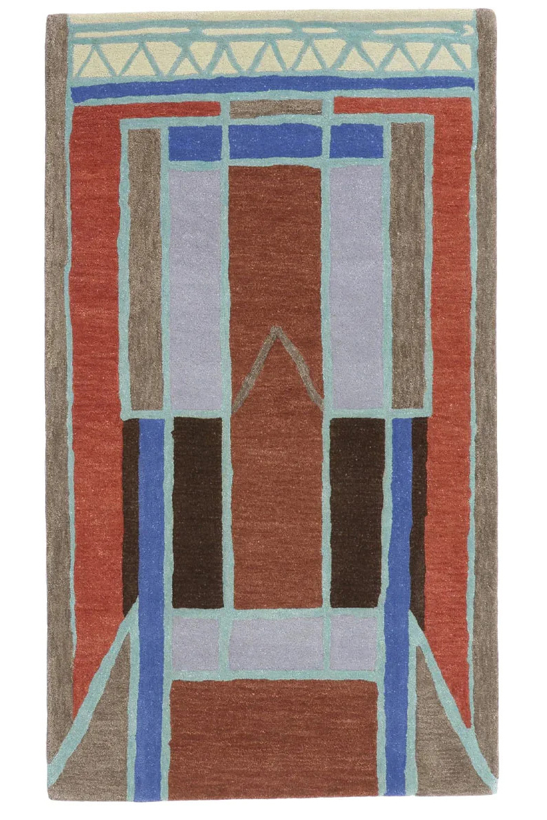 The Omega Workshops, led by Roger Fry, served as the Bloomsbury Group's visual arts arm, bridging the gap between fine and decorative arts. This limited edition rug, featuring a design attributed to Duncan Grant or Frederick Etchells from 1913-1915, reflects the Post-Impressionist aesthetic with cubist and fauvist influences. Crafted from 100% hand-dyed wool pile, each rug is part of an edition of 250 and is on display at the Courtauld Gallery shop for pre-order inspection. Dimensions: 100 x 176 cm.