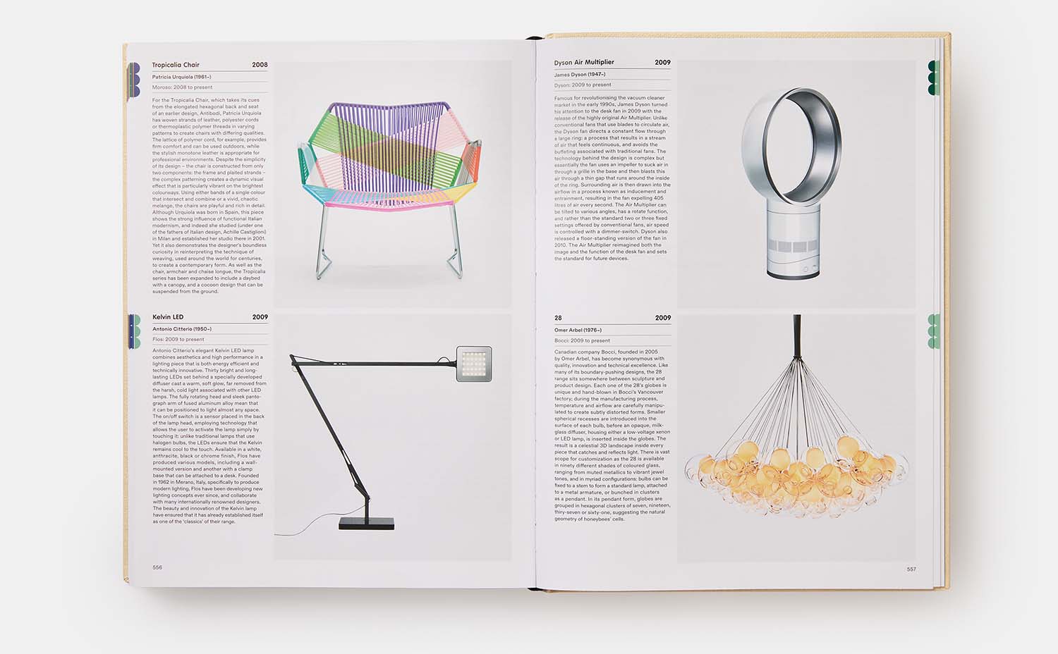 The book showcases celebrated names alongside the new stars of modern design, including Le Corbusier, Alvar and Aino Aalto, Isamu Noguchi, Ronan and Erwan Bouroullec, Lani Adeoye, Faye Toogood, and Lindsey Adelman. Each entry is accompanied by beautiful imagery and a detailed description that offers a rich insight into the product, its history, and its maker, from the renowned Tulip Chair by Eero Saarinen to the much-loved Bird Zero e-scooter.