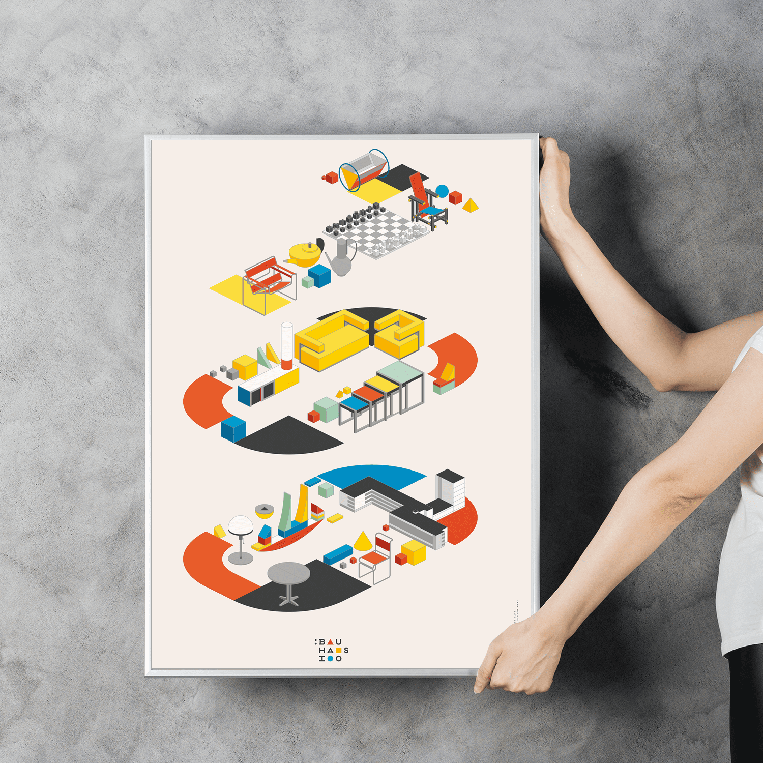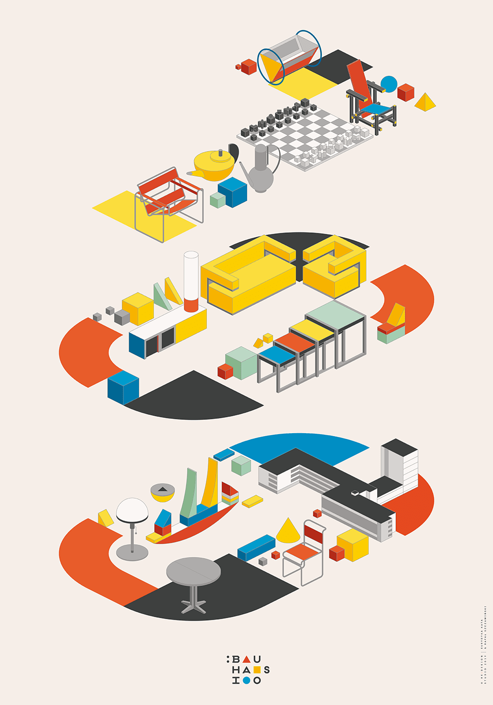 Graphic designers Eurydyka Kata & Rafał Szczawiński from re:design have shared some of their most recent designs celebrating Bauhaus' 100th Anniversary. Inspiration for these posters was taken directly from Bauhaus' most iconic designs. "For this poster, we researched some of the most famous designs from the Bauhaus school: furniture, toys, appliances, and recreated them isometrically. Both the drawing style and colors are inspired by Bauhaus art and style. This was great fun to work on and we're glad we could pay tribute to one of the most important institutions in the history of design."