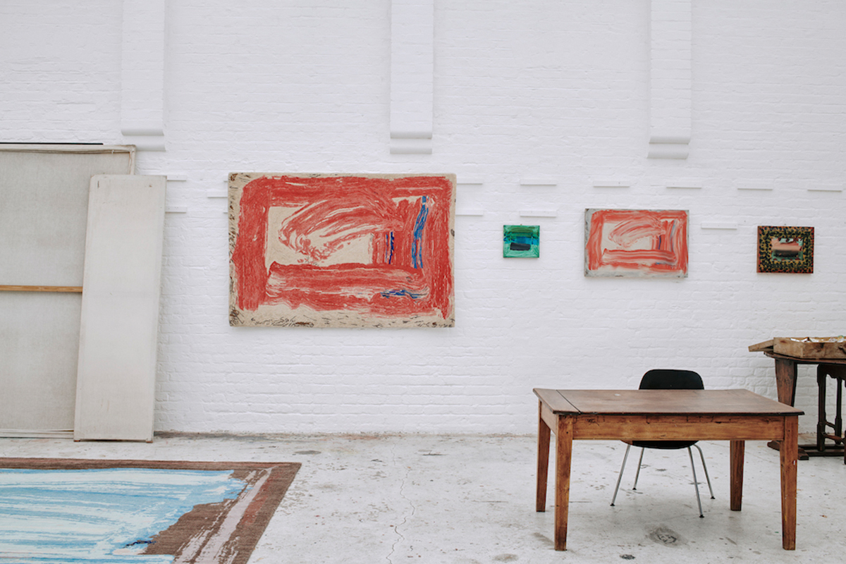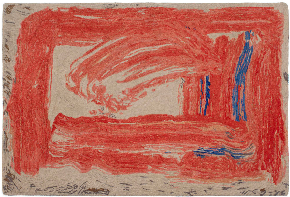 The limited edition rug "Omega Window Rug" showcases post-impressionist aesthetics in hand-dyed wool.