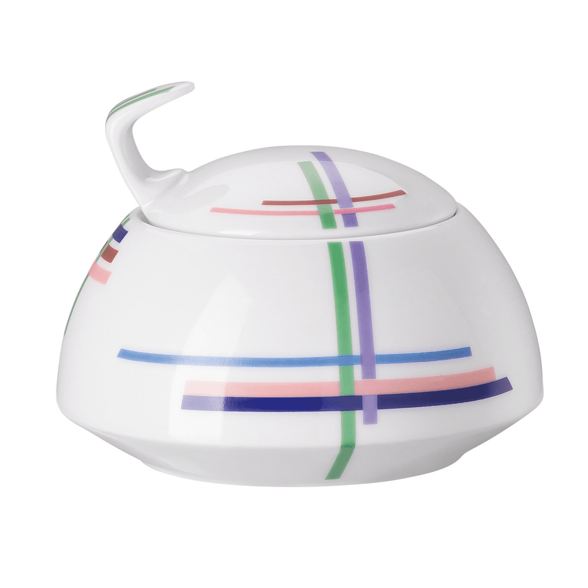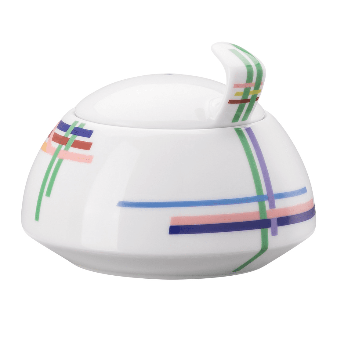 Bethan Laura Wood is particularly appreciated for her experimental designs that play with colour and material. For the Bauhaus anniversary year, the British designer created an expressive jubilee motif reminiscent of overlapping warp and weft threads in the manufacture of textiles, providing the austere shape with a flowing and, at the same time, playfully colourful motif. Wood also had in mind the expressive weaving works of Anni Albers, who studied at the Bauhaus from 1922 and later lived in one of the master houses in Dessau with her husband Josef, who was regarded as an extremely influential painter, colour theorist and art teacher.