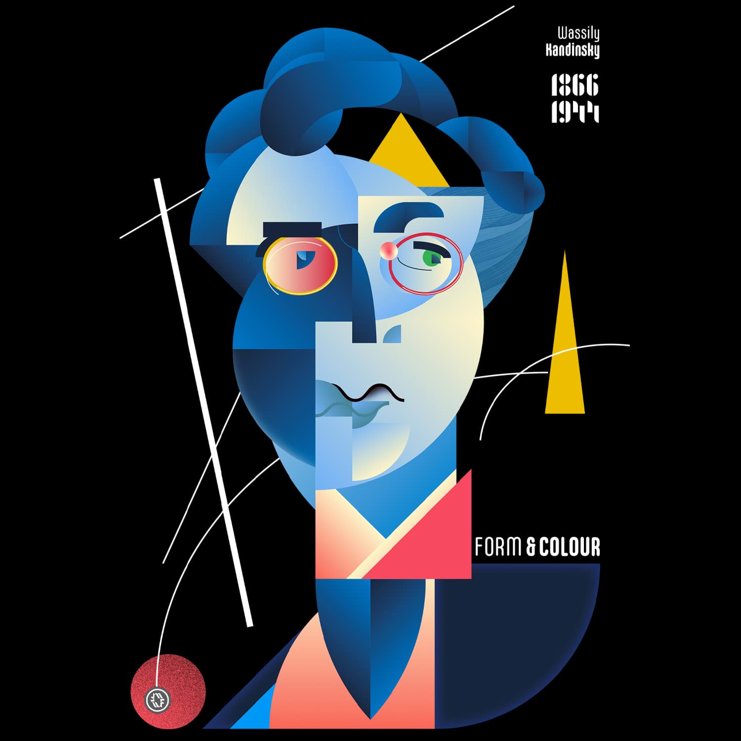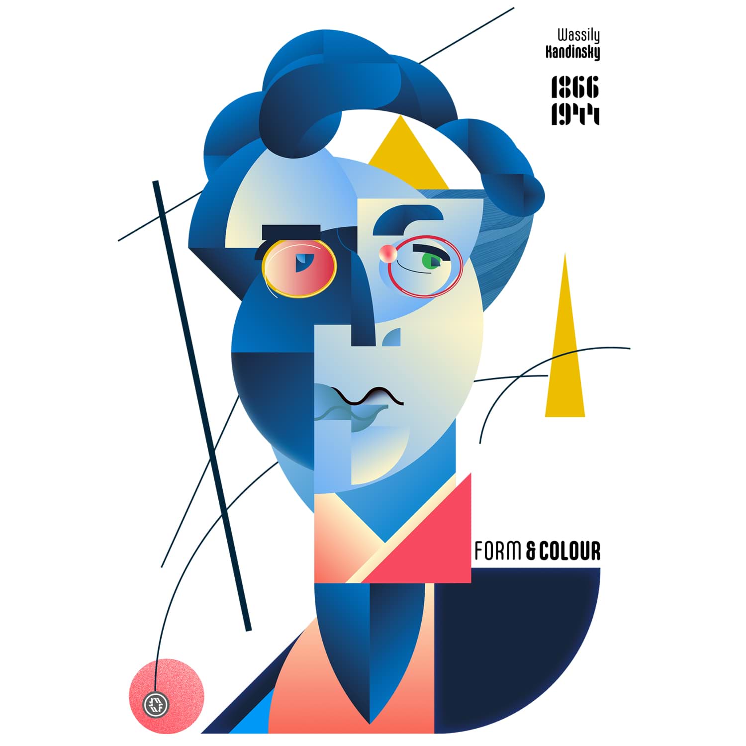 The Russian painter Wassily Kandinsky was born on 4 December 1866 in Moscow as the son of a tea merchant. From 1885 he studied law and economics, but became more and more interested in art and painting. Four years after his dissertation and inspired by a French Impressionist exhibition, Kandinsky decided to study painting in Munich in 1892. With his lover and later wife, the painter Gabriele Münter, he undertook numerous study trips, which contributed greatly to his artistic development. He founded various artist associations, among them the Blaue Reiter in Munich in 1911 together with Franz Marc.